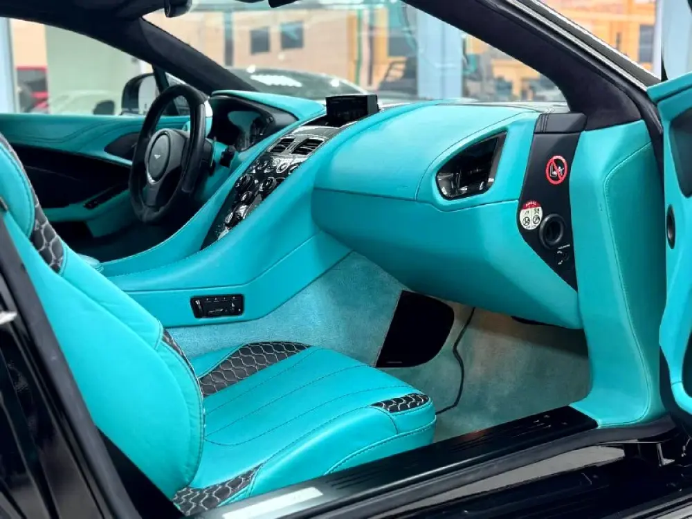 For sale is an exceptional 2014 Aston Martin Vanquish Q Edition, a true automotive masterpiece. This rare, limited edition vehicle is one of only 70 ever produced, making it a highly coveted collector’s item. With its stunning Tiffany Blue leather interior and bespoke Q by Aston Martin touches, this car combines luxury, performance, and exclusivity in a way few can match.