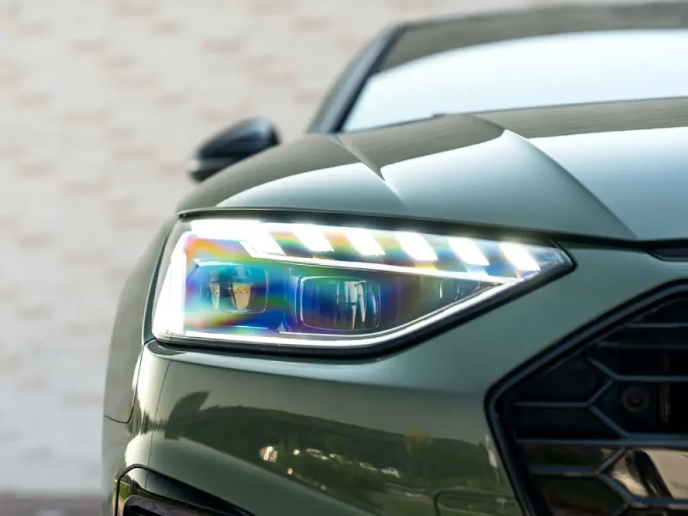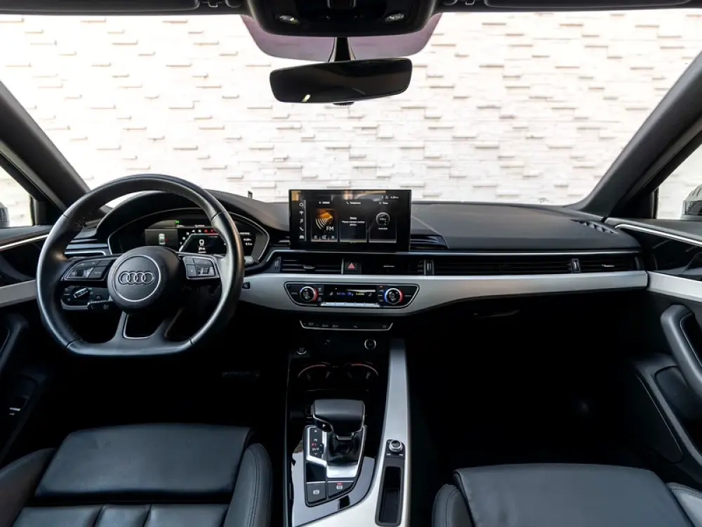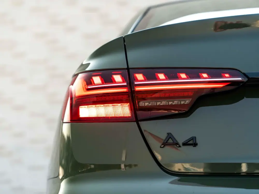What really turns heads? Its striking District Green Metallic paint—a rare, bold shade that sets you apart from the crowd with a fresh, sophisticated vibe. Wrapped in sporty S-Line styling and rolling on sleek 18-inch Audi Sport wheels, this A4 is a perfect blend of elegance and aggression.