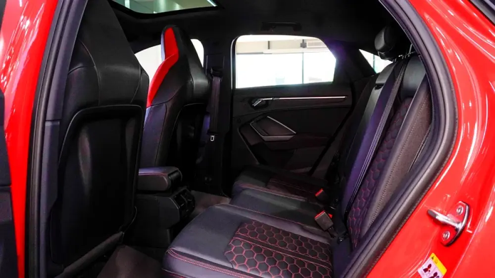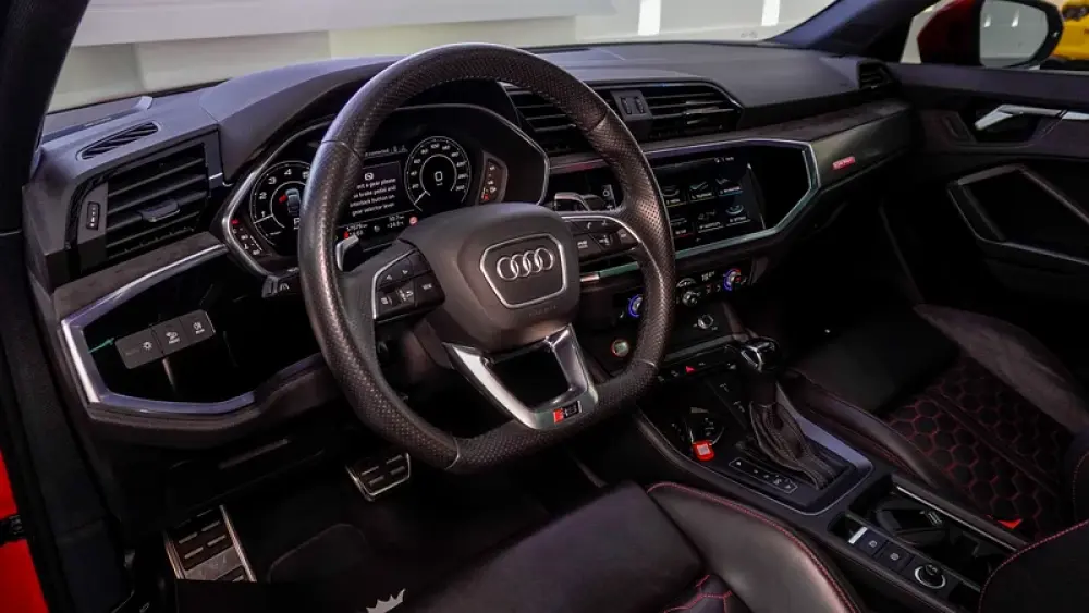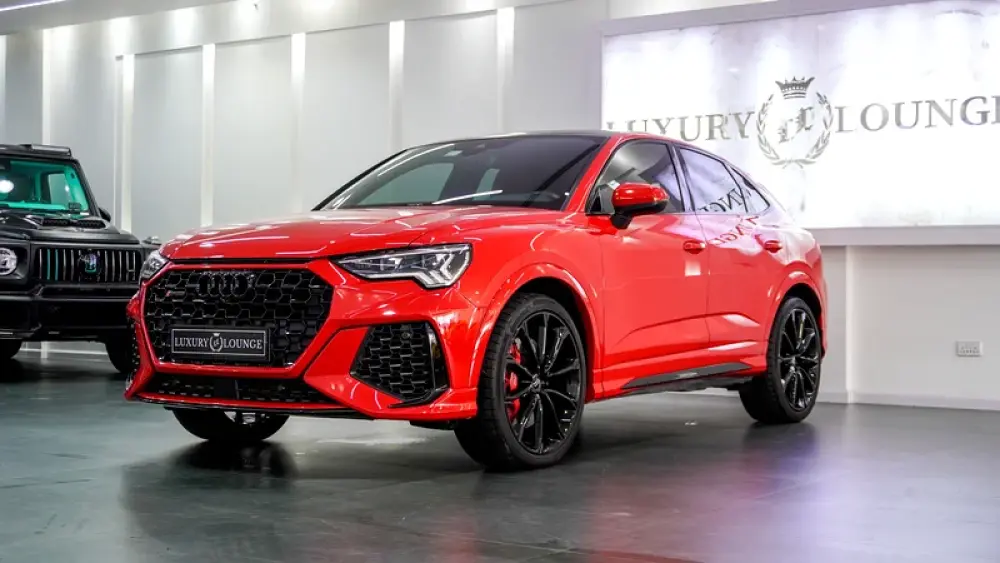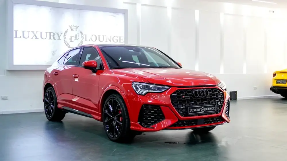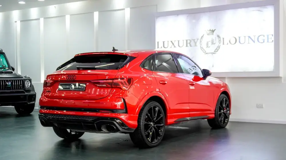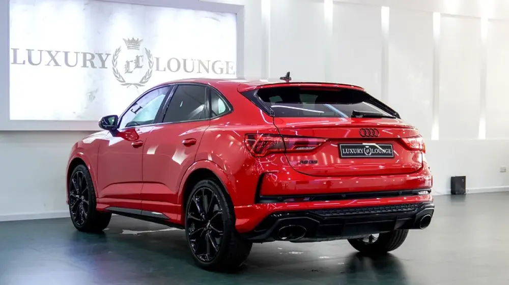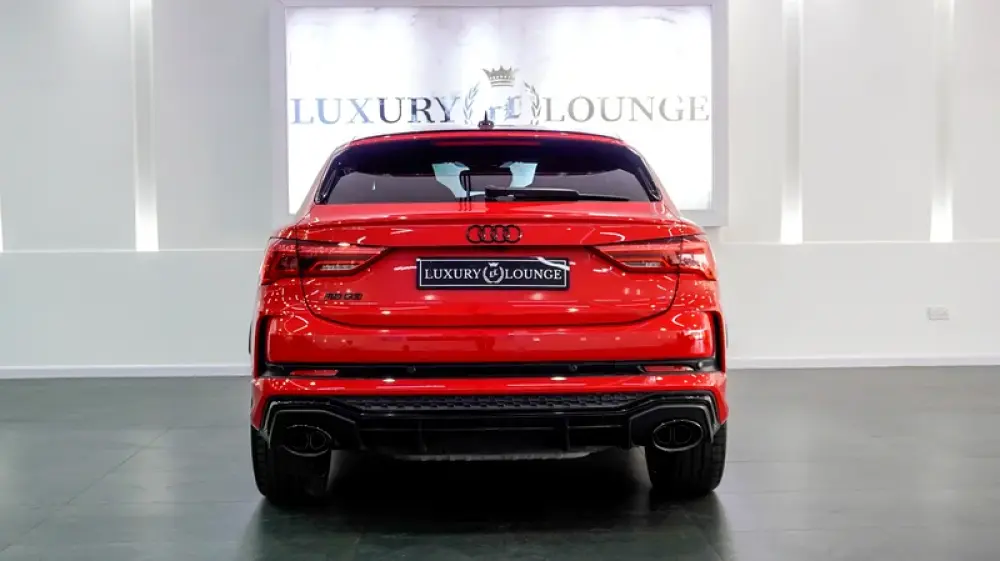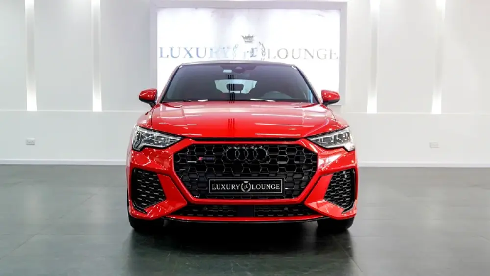 This Pre-owned Audi RSQ3 2023 is now available at Luxury Lounge car Showroom along Sheikh Zayed Road Dubai UAE. Red exterior and black interior. Accident free and in excellent condition