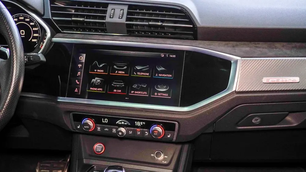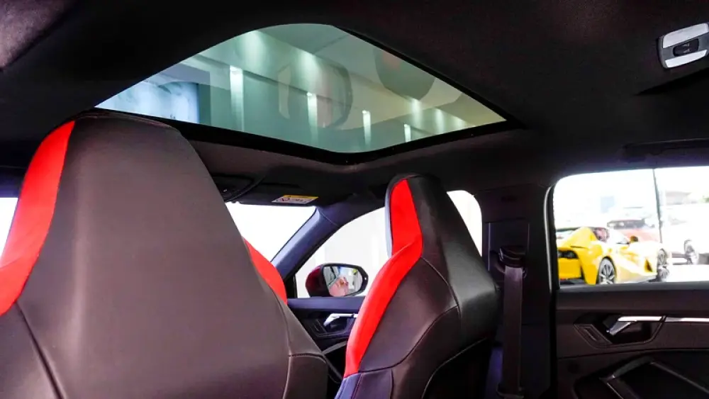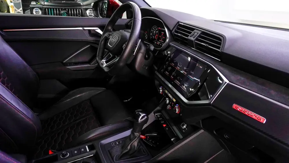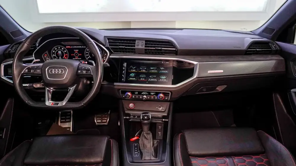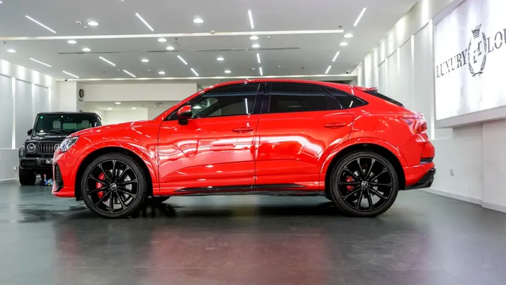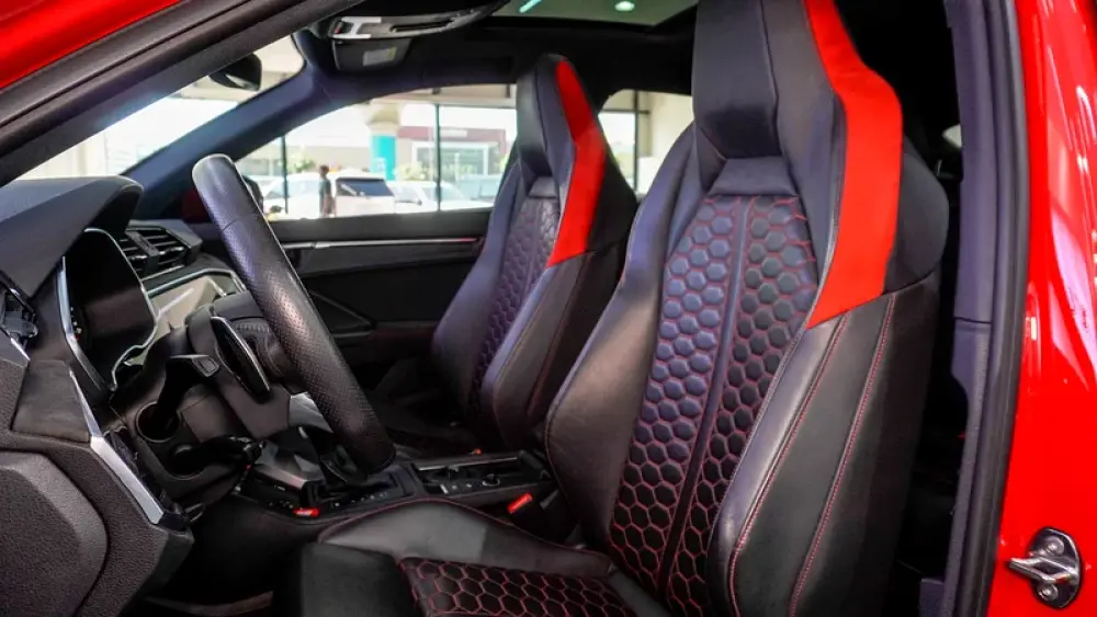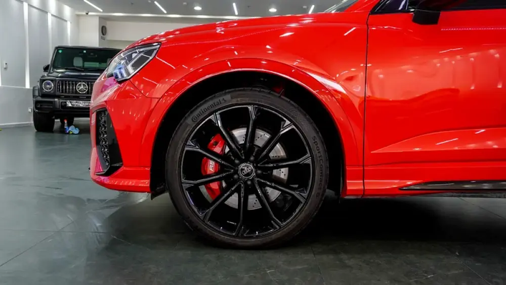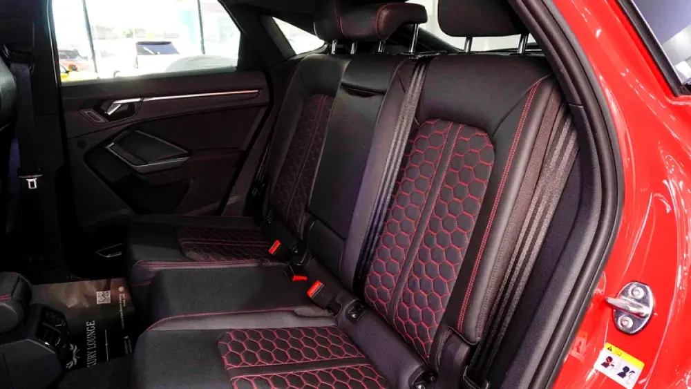 This Pre-owned Audi RSQ3 2023 is now available at Luxury Lounge car Showroom along Sheikh Zayed Road Dubai UAE. Red exterior and black interior. Accident free and in excellent condition