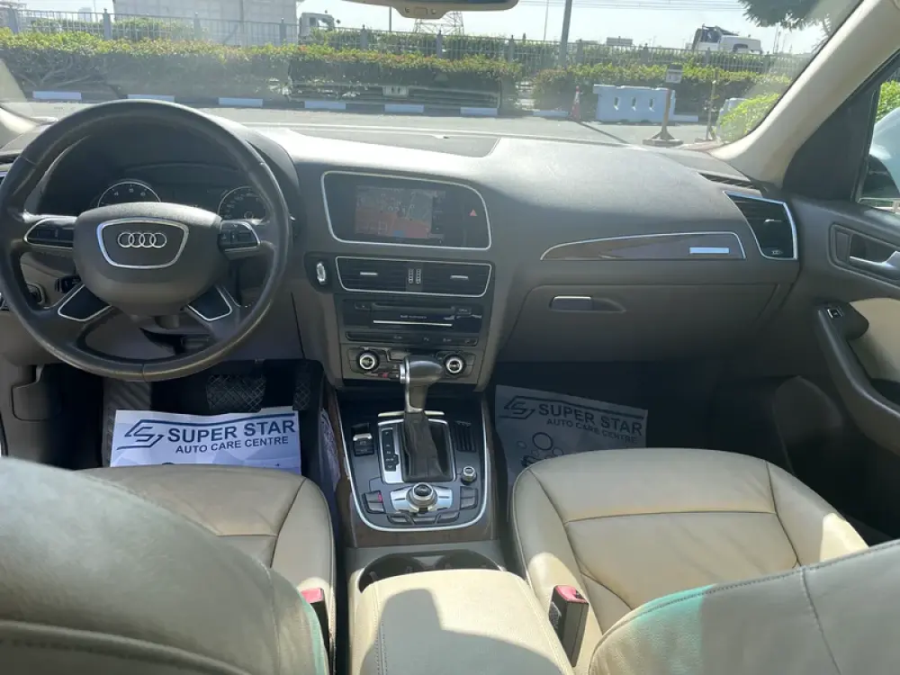 Audi Q5 2017 GCC V4 2.0L IN BEST CONDITION FREE ACCIDENT ORGINAL PAINT 100% CAMERA NAVIGATION KEYLESS START LEATHER SEATS AWD PARKING SENSOR CRUISE CONTROL BLUETOOTH AND MANY MORE OPTIONS.