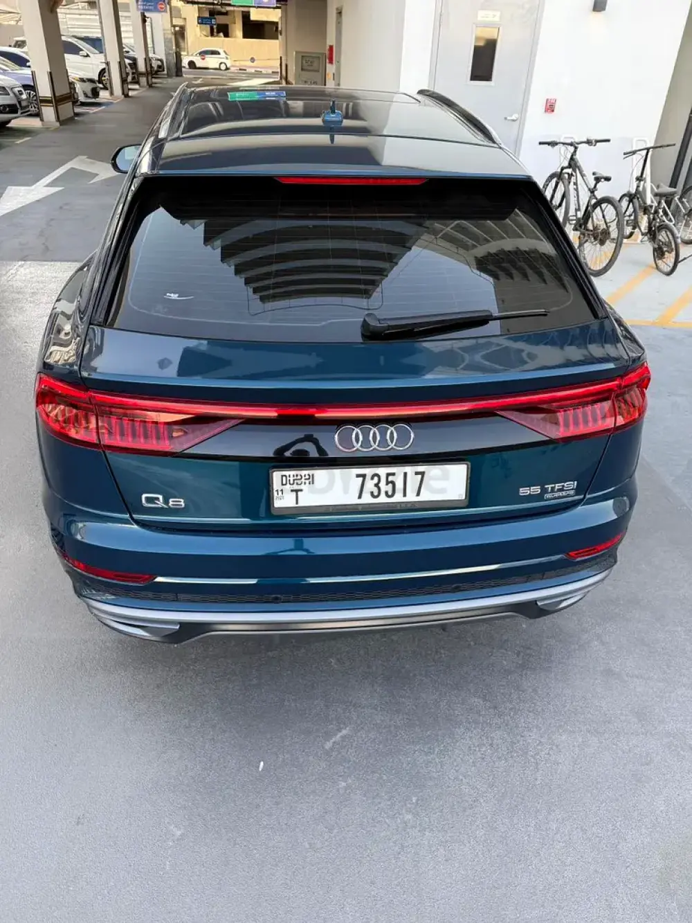clean 2019 Audi Q8 55 TFSI Quattro 3.0L V6 turbo + mild hybrid GCC specs and no accidents.