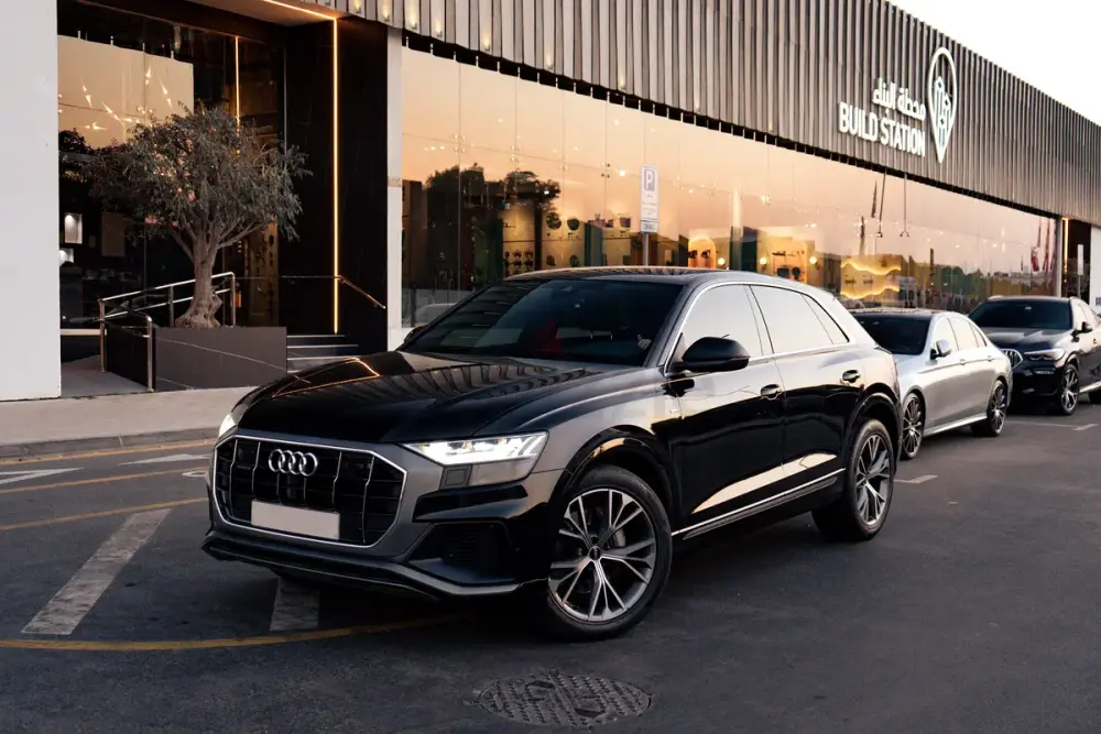 Audi Q8 2023, finished in elegant Black, S-Line package, GCC specifications. Purchased from Dubai dealer on Sheikh Zayed Road, first registered in UAE in 2023. Car is fully protected with premium PPF, always garage kept, carefully driven and maintained. Two original keys, full service history available. Powered by the 3.0L V6 TFSI Mild Hybrid (340 hp) with legendary quattro all-wheel drive.