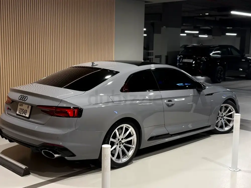 Audi RS5 for sale in a spectacular nardo gray color - the perfect combination of aggression and elegance. All-wheel drive quattro, S-line sports body kit, black grille and premium optics create the very "wow effect" at first sight.