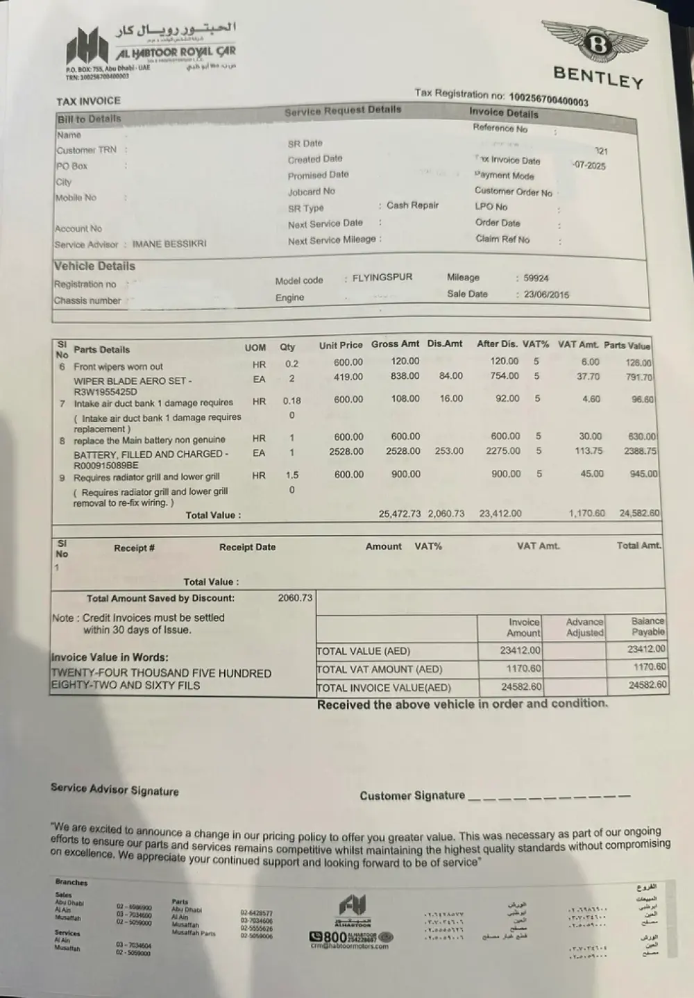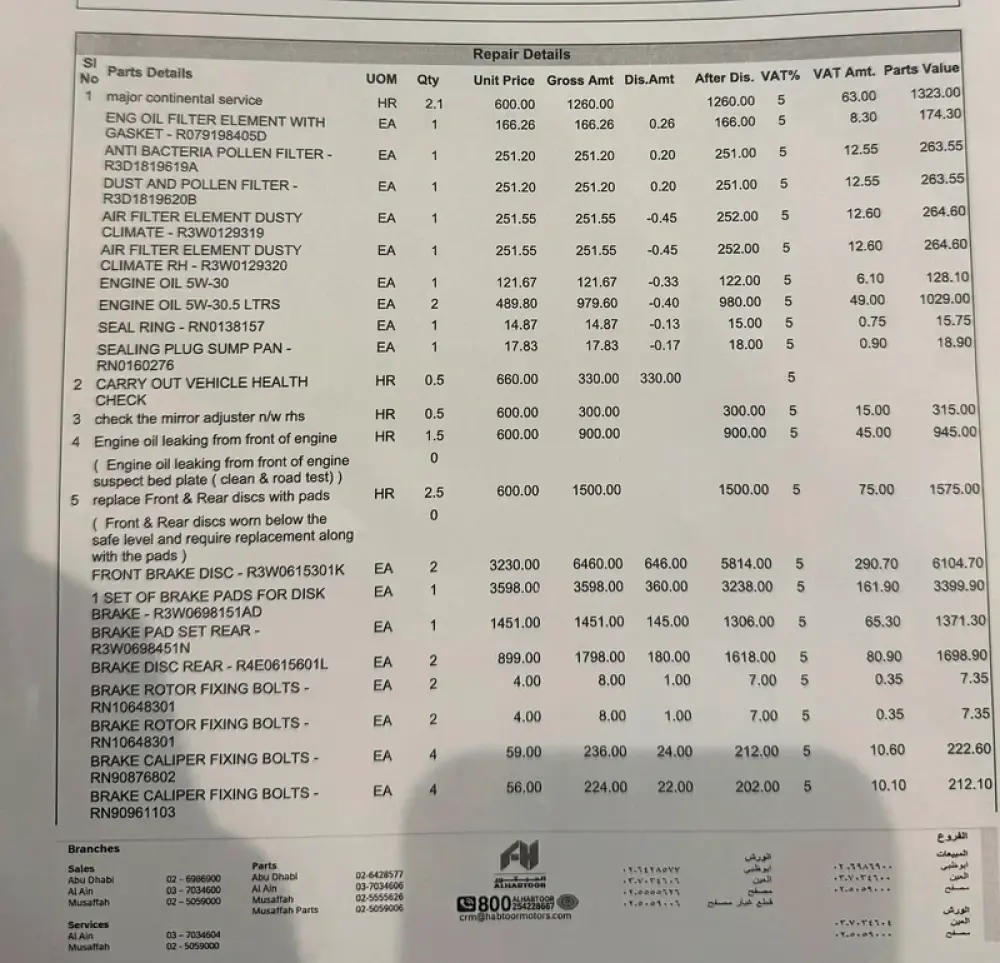 Major Service at Agency Aed 25k in Jul25