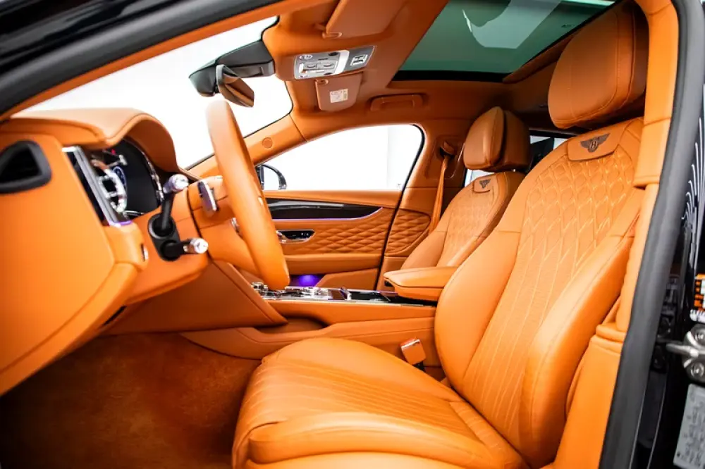 Choosing the Flying Spur is just the beginning of your journey. There are numerous wheels to choose from, which can be accompanied by red or black brake callipers. For a darker edge, the Blackline Specification takes all the brightware – the polished metal detailing on the outside of the car – and turns it black. Inside, select the Colour Specification and the colours of the hides and stitching are yours to choose. Veneer options include high gloss woods, dual veneers that combine panels of two different wood finishes, separated by a thin pinstripe of chrome, and other woods treated with a more minimalist open-pore effect.