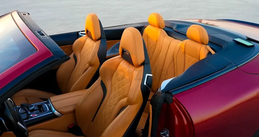 Convertible soft top, premium leather interior, digital cockpit, ambient lighting, and advanced driver assistance features.