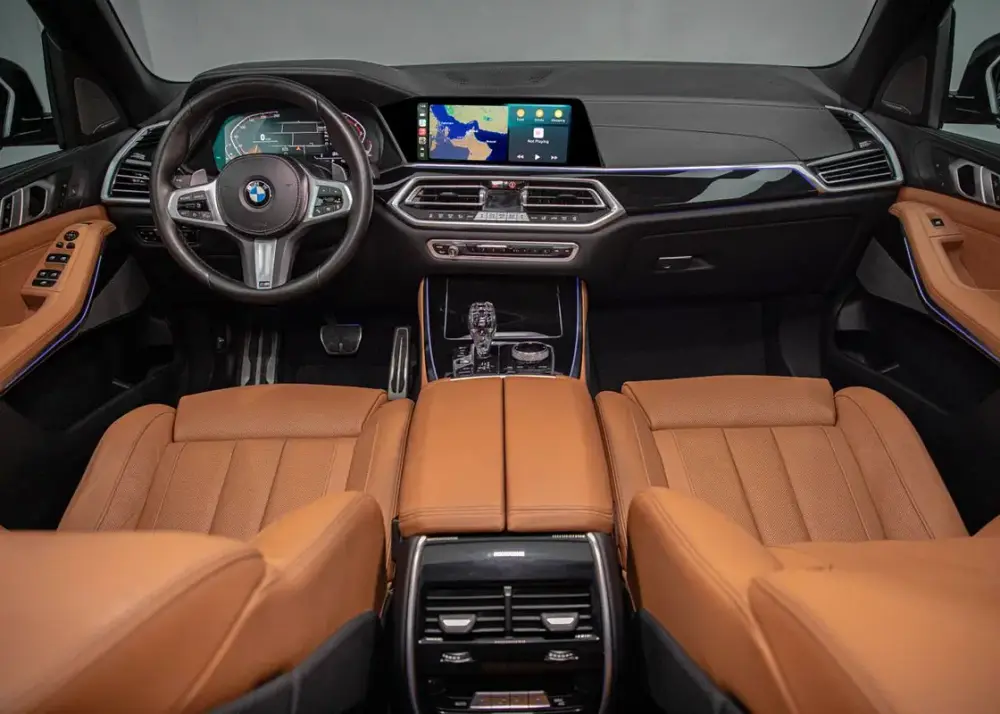 Interior space is generous for adults in both the first and second row, but the X5's optional third row is for kids only.