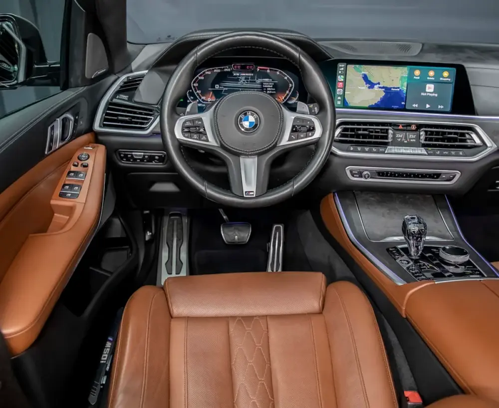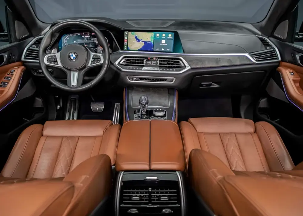 Interior space is generous for adults in both the first and second row, but the X5's optional third row is for kids only. Once settled inside, occupants are treated to a cabin lined with high-quality materials, plenty of charging points for devices, and—depending on the options chosen—myriad luxury features.
