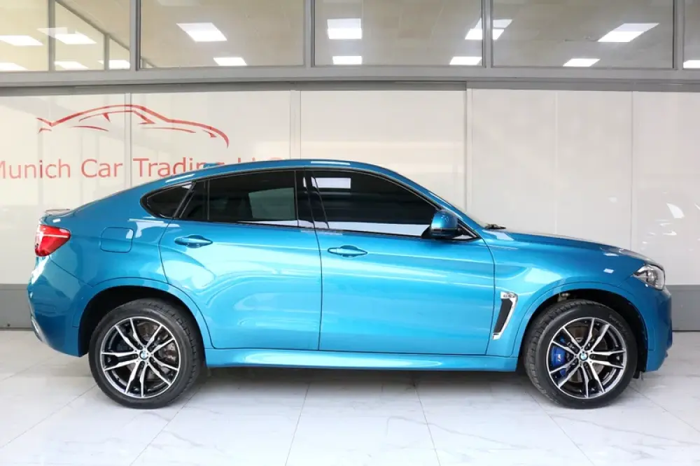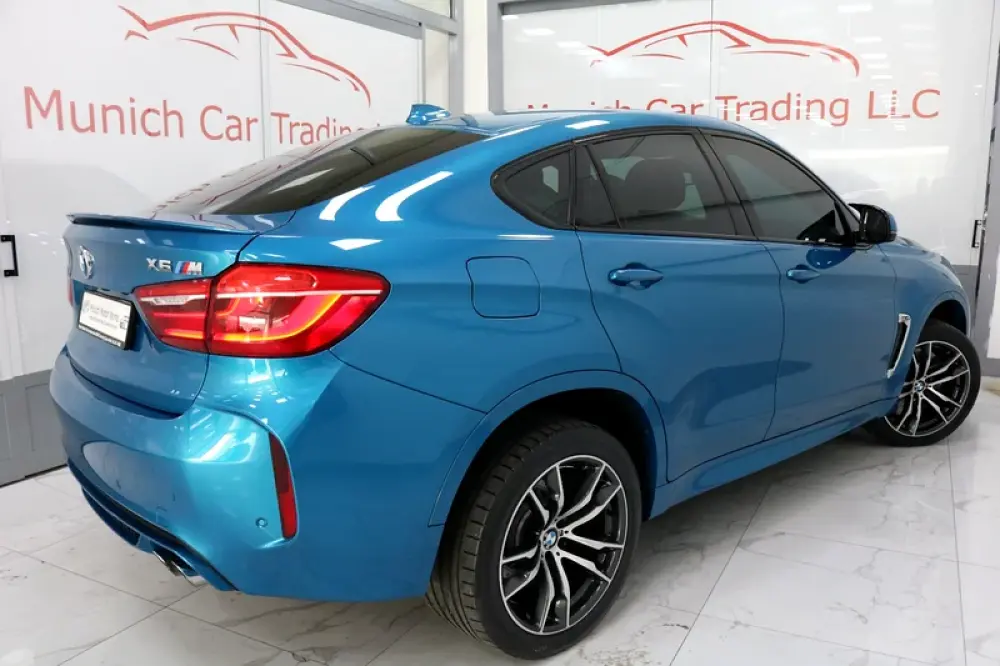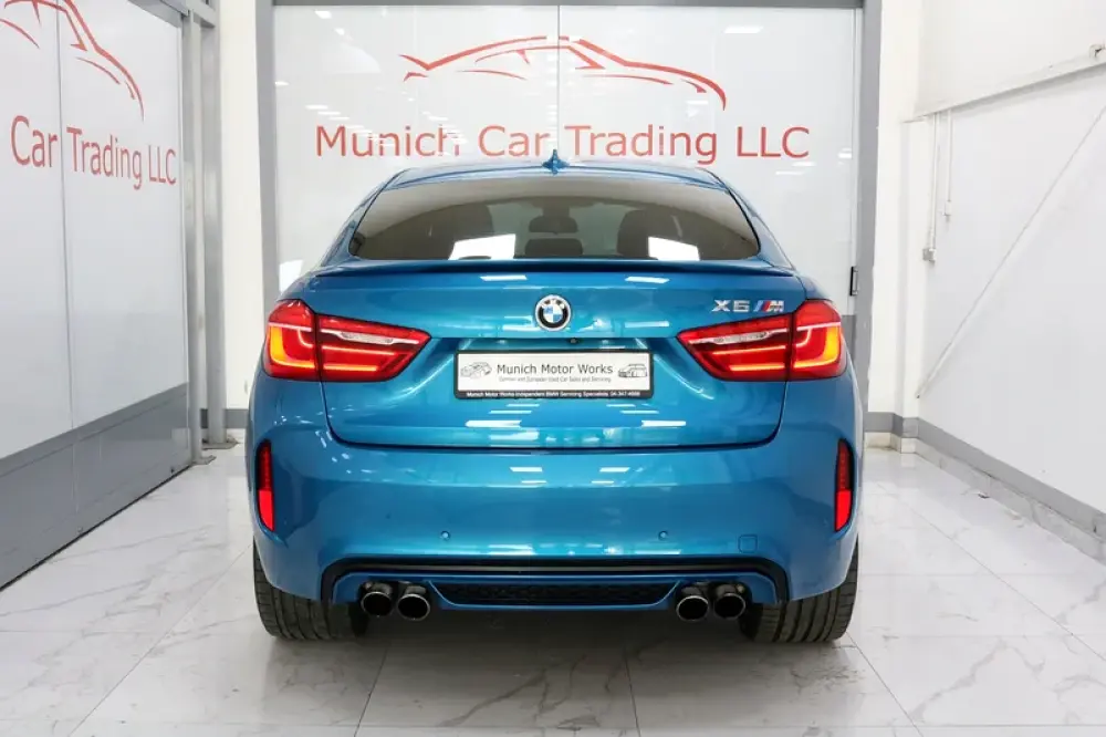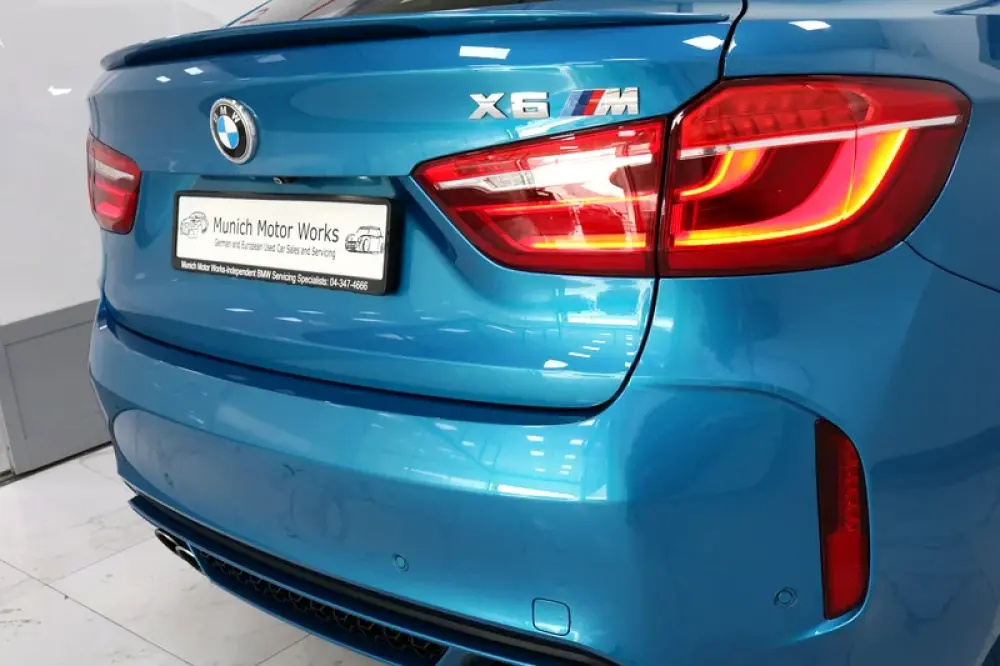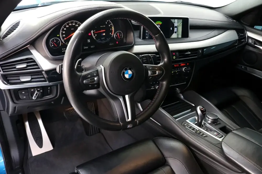 2018 BMW X6M in Long Beach Blue Metallic with Black leather and only 64,800kms.