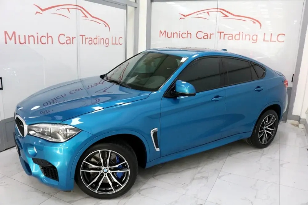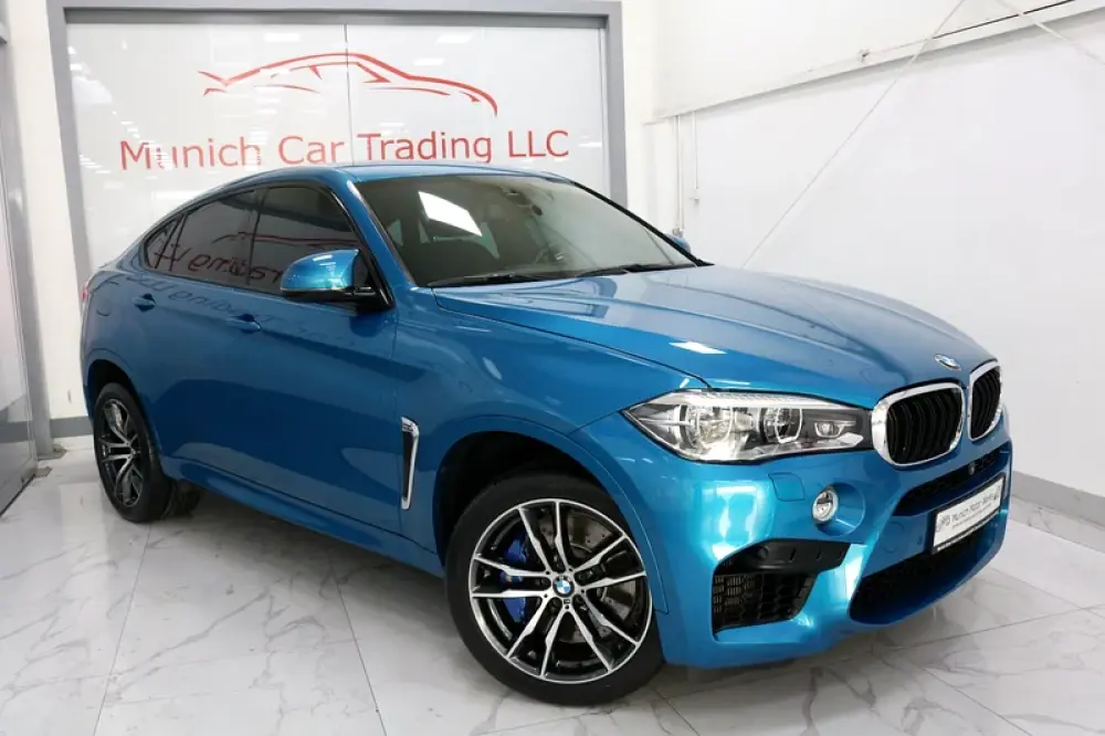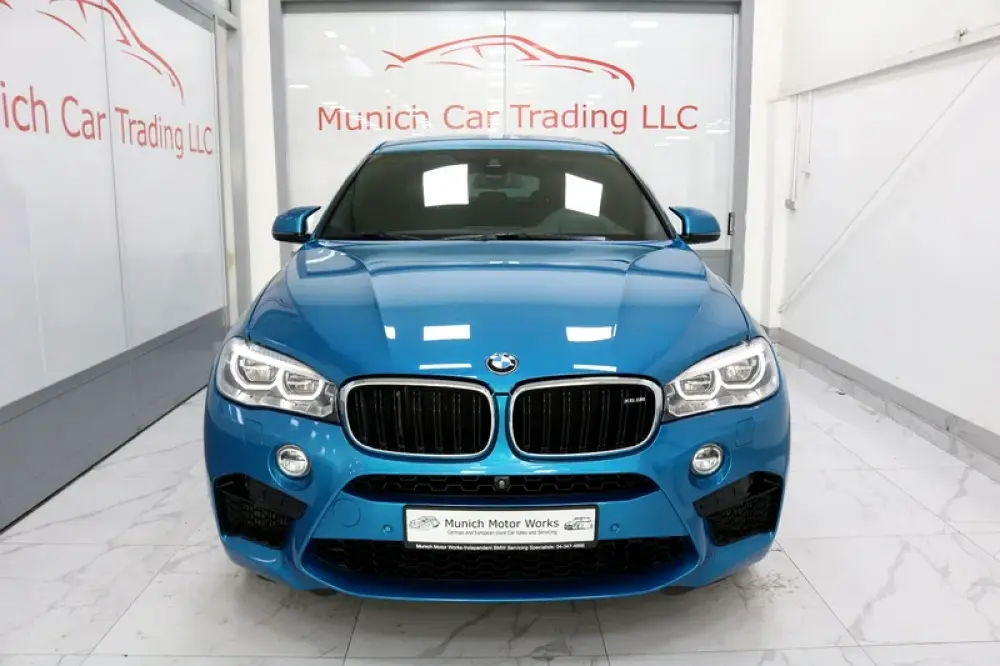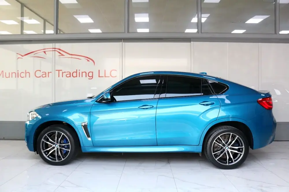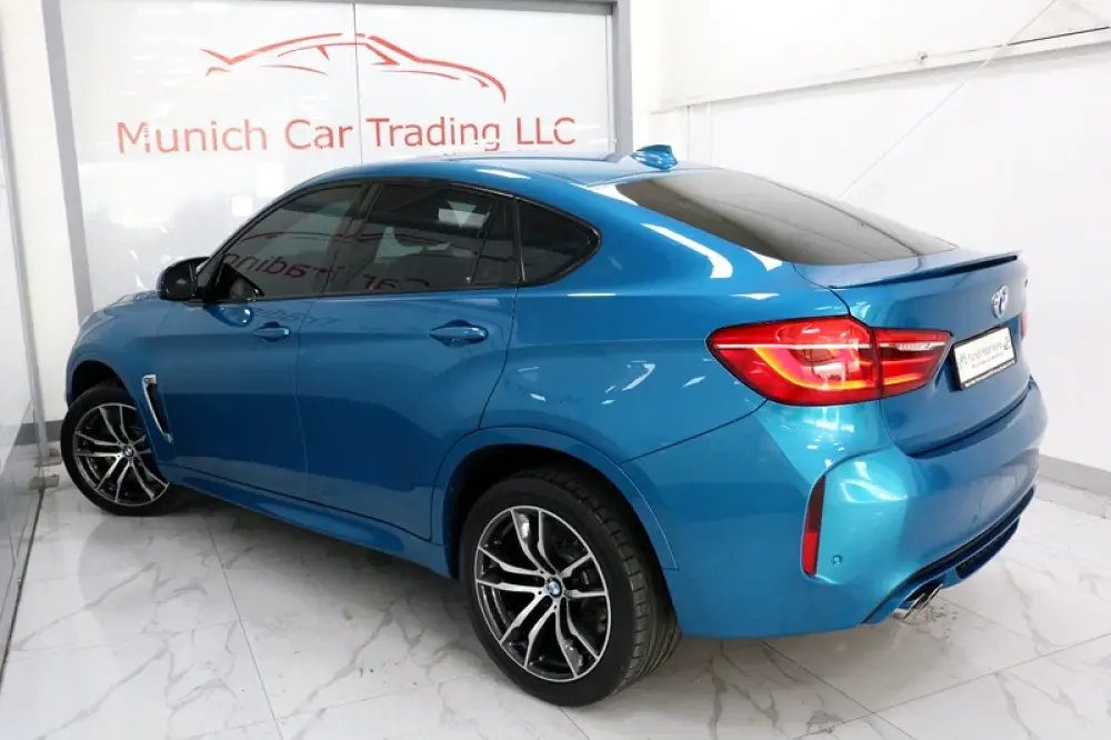 2018 BMW X6M in Long Beach Blue Metallic with Black leather and only 64,800kms.
