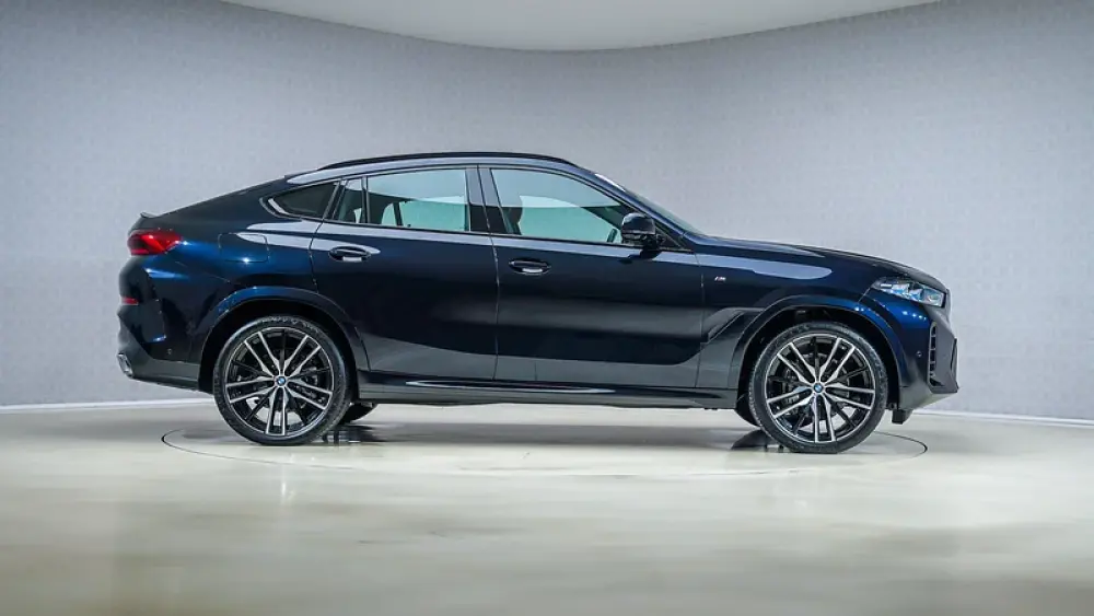 Command the road with the 2024 BMW X6 40i M Sport, a coupe-SUV that blends athletic performance with unmistakable presence. Its 3.0L TwinPower Turbo inline-6 delivers an exhilarating 381 hp and 0-100 km/h in just 5.4 seconds. The M Sport package enhances its aggressive stance with aerodynamic styling, 22-inch 742M bi-color wheels, and an interior awash with premium materials, including Carbon Fibre.