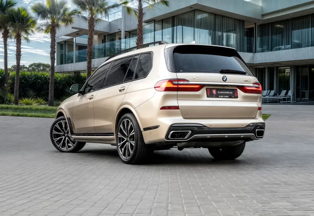 Experience luxury and power with this stunning 2019 BMW X7 M-Kit in elegant Gold. Powered by a 4.4L V8 engine, it promises thrilling performance and unmatched ride comfort.