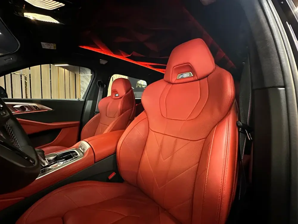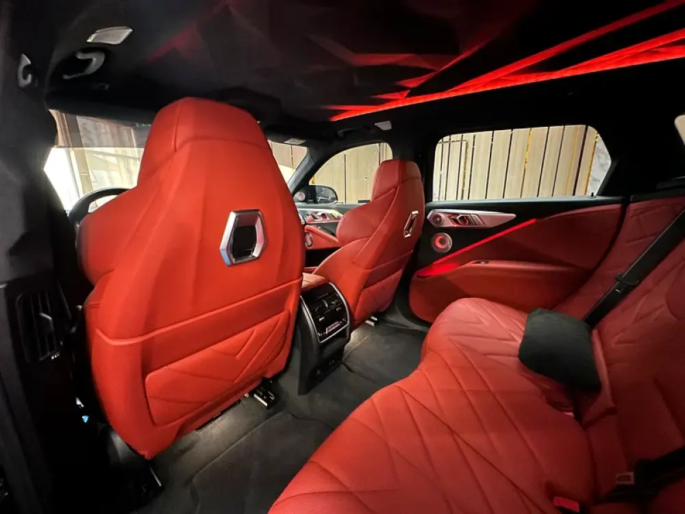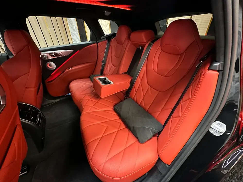 Interior: Exclusive Black Merino Leather with Red Contrast Stitching