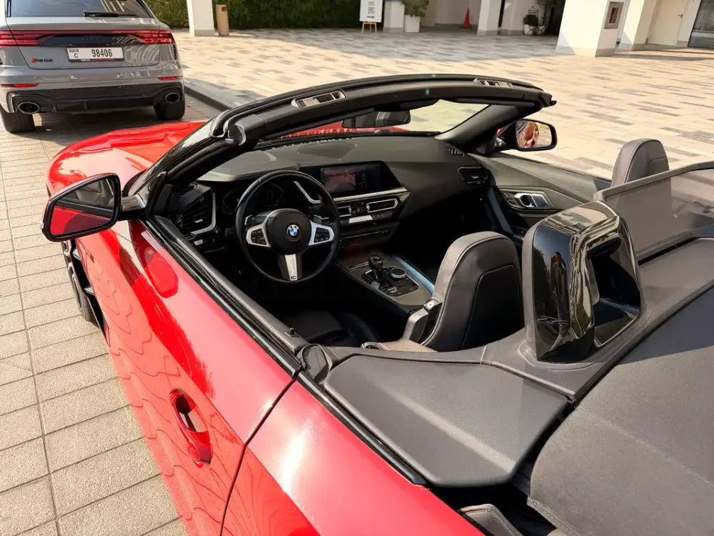 BMW Z4 20i in an exceptional condition, inside and out — a true head-turner with flawless paint, a spotless interior, and zero mechanical issues. It comes fully loaded with premium features like the M-Sport package, digital cockpit, adaptive LED headlights, electric memory seats, reverse camera, parking sensors, paddle shifters, wireless Apple CarPlay, dual-zone climate control, and a smooth 8-speed ZF gearbox, adaptive cruise control and emergency braking feature. The car drives tight, powerful, and responsive with ZERO rattles, no warning lights, and full service history with AGMC till 55,000km and ENOC afterwards. Always parked in the shade. It’s clearly been pampered, and kept in genuinely showroom-level condition.
