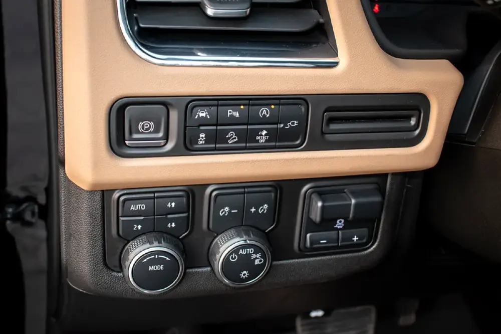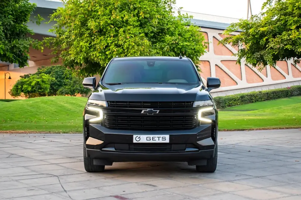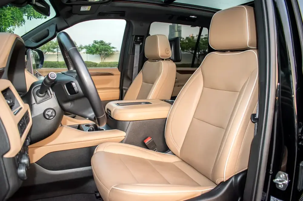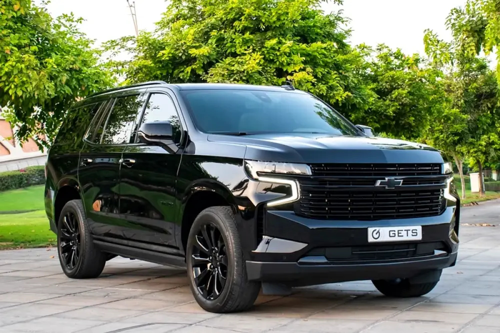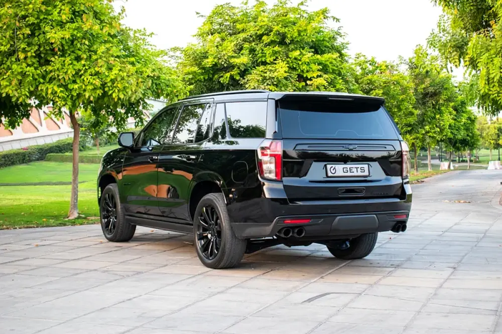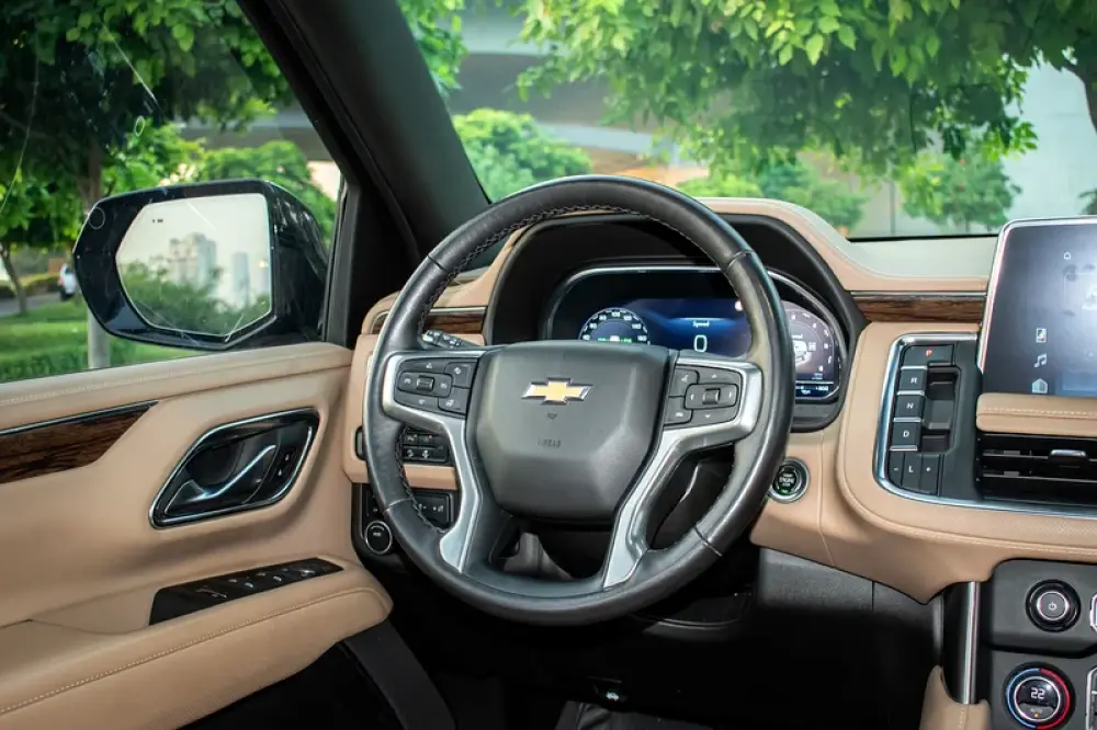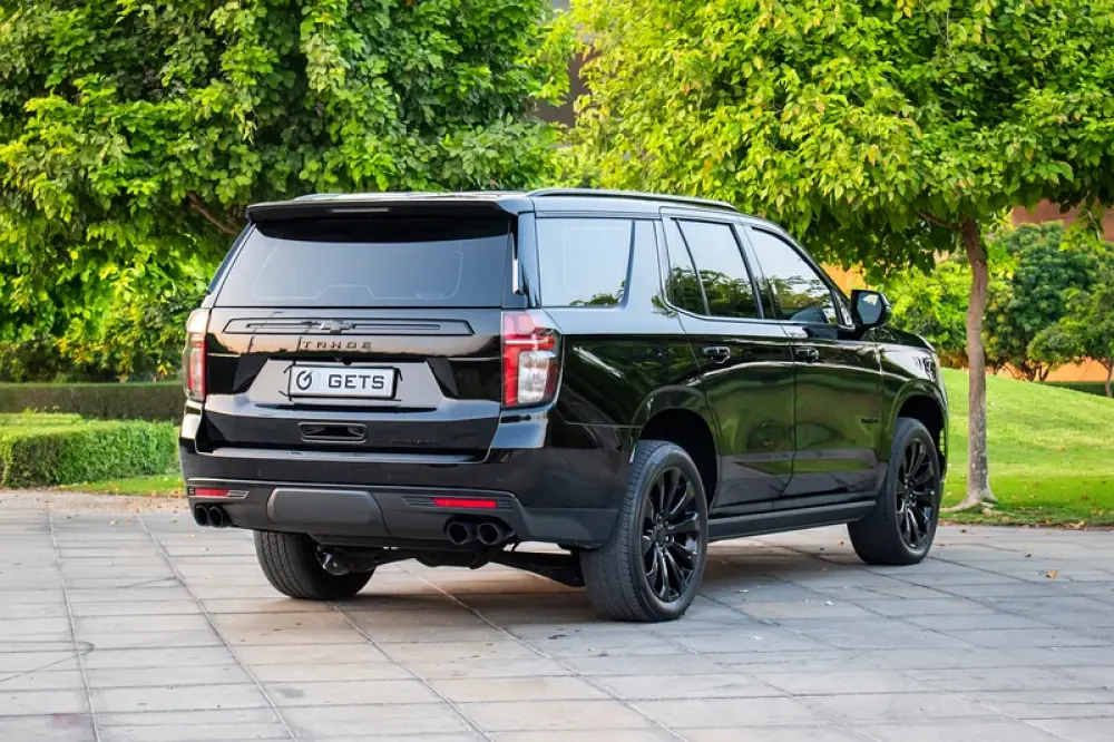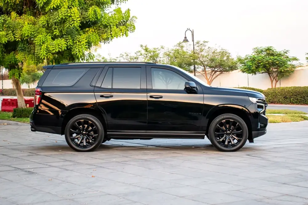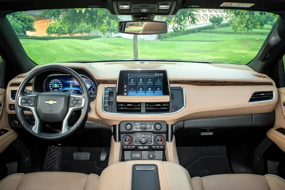 A black-on-beige, fully loaded Premier—the sweet spot in the Tahoe range where luxury, tech and ride quality step up decisively over other modifications