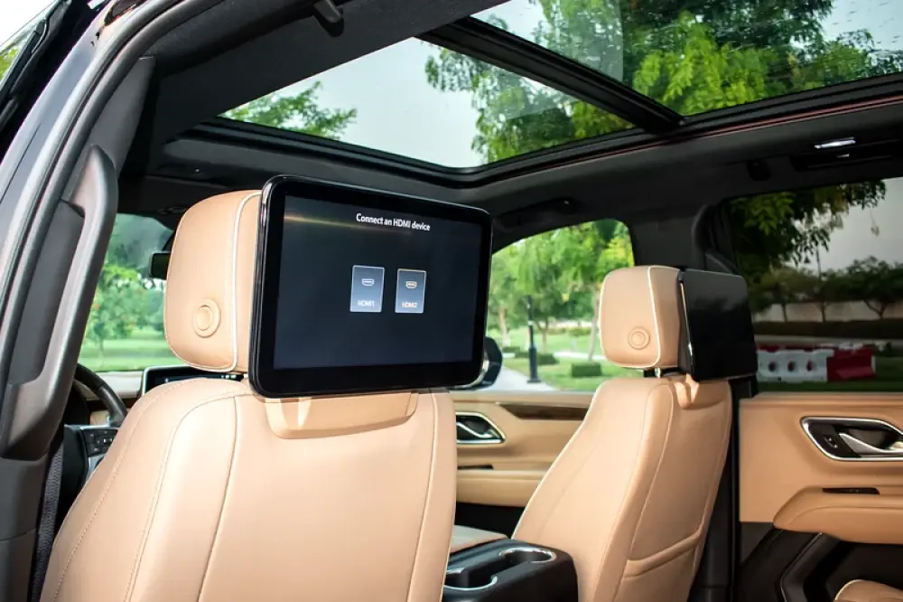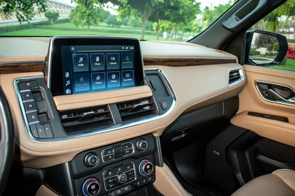 Tahoe Premier—the one that feels a class above. This 2022 GCC-spec Premier wraps family-first space in true luxury: Magnetic Ride Control calm, Bose Centerpoint sound, 360º cameras, Rear Camera Mirror, HUD, heated/ventilated seating and power-everything convenience—backed by full Premier safety and tech.