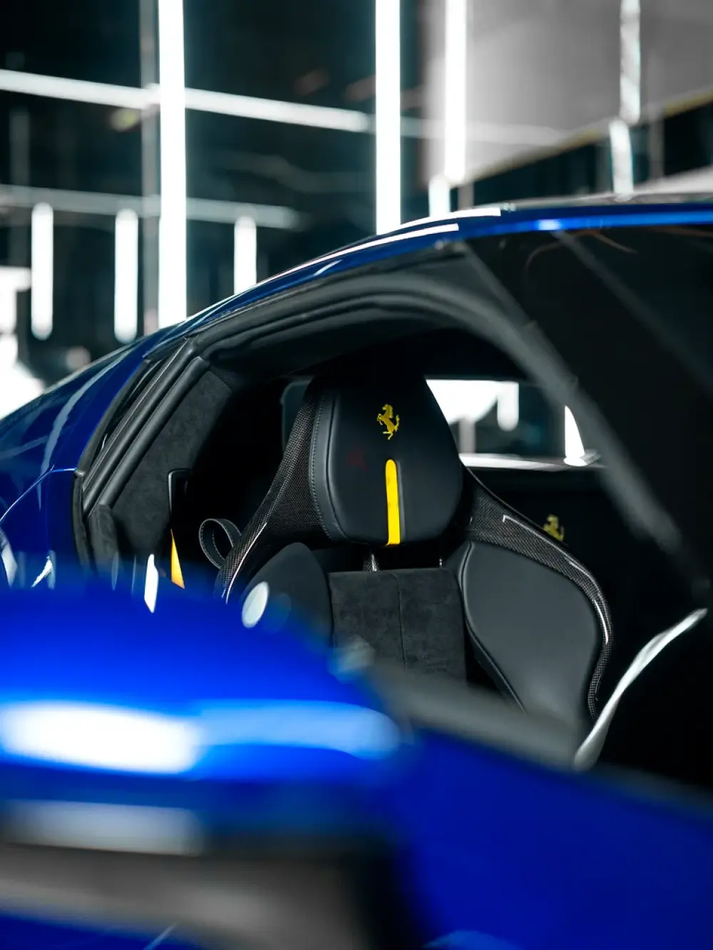 Handcrafted carbon fiber accents throughout, emphasizing Ferrari’s motorsport DNA