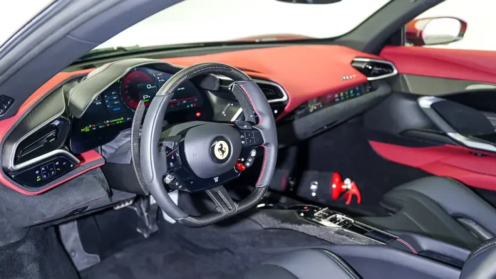 Equipped with front-axle lift, surround view, adaptive front-lighting, and the Scuderia Ferrari shields, this 296 GTB offers everyday usability with track-ready dynamics.