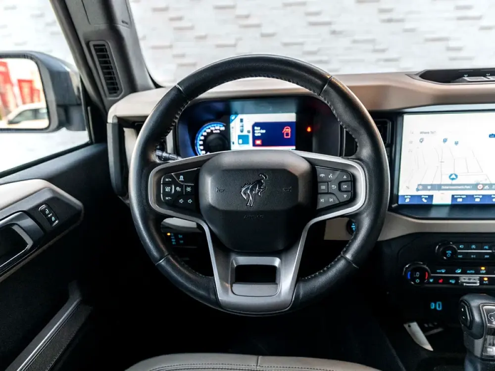 Equipped with the Sasquatch Package, this Bronco comes with 35-inch all-terrain tires, Bilstein long-travel suspension, locking front & rear differentials, and Beadlock-capable wheels — purpose-built for desert and dune mastery.
