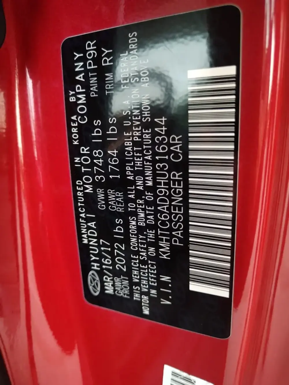 Vin No KMHTC6AD9HU316344