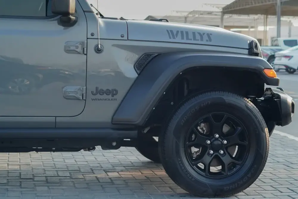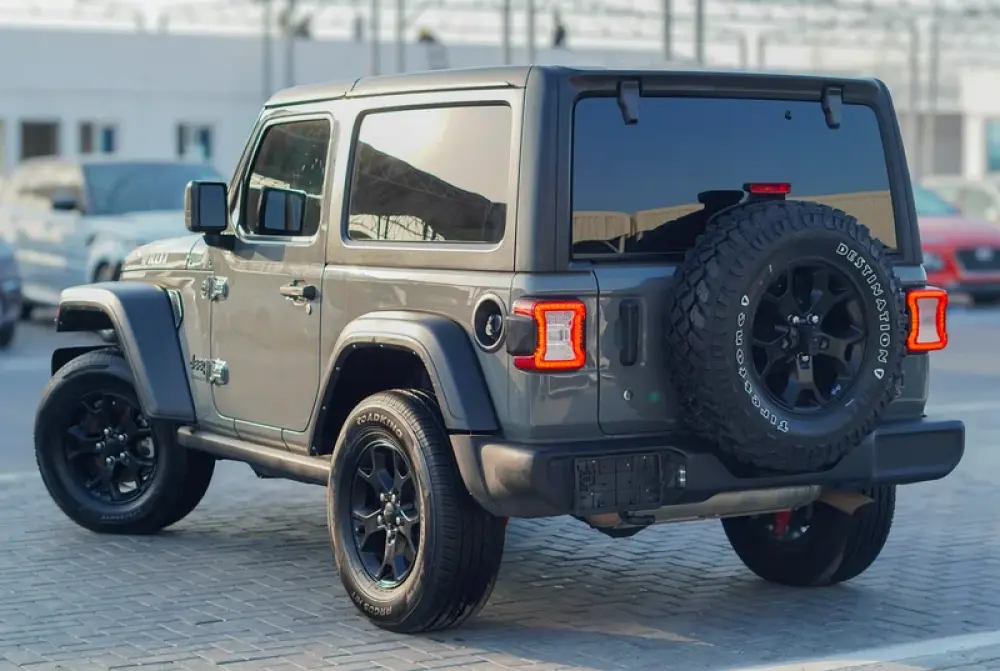 سيارة جيب رانجلر ويلز ويلر محرك اربعة سلندر 3.6 دفع رباعي موديل 2021 ممشاها 51.270 كم باللون الرمادي سقف قابل للازالة ويوجد بها ضمان سنة بمبر تو بمبر