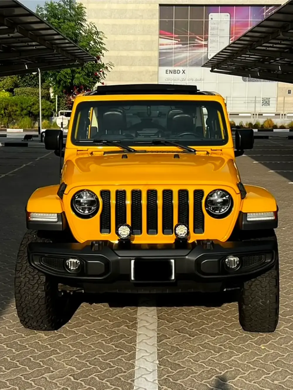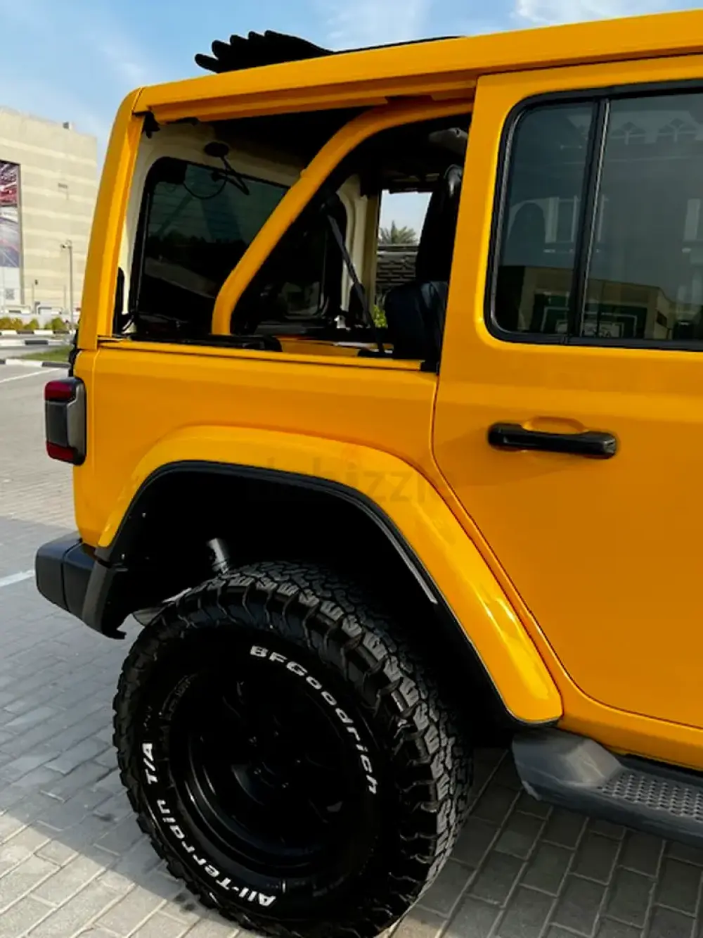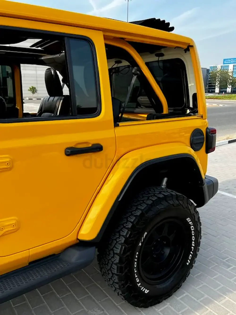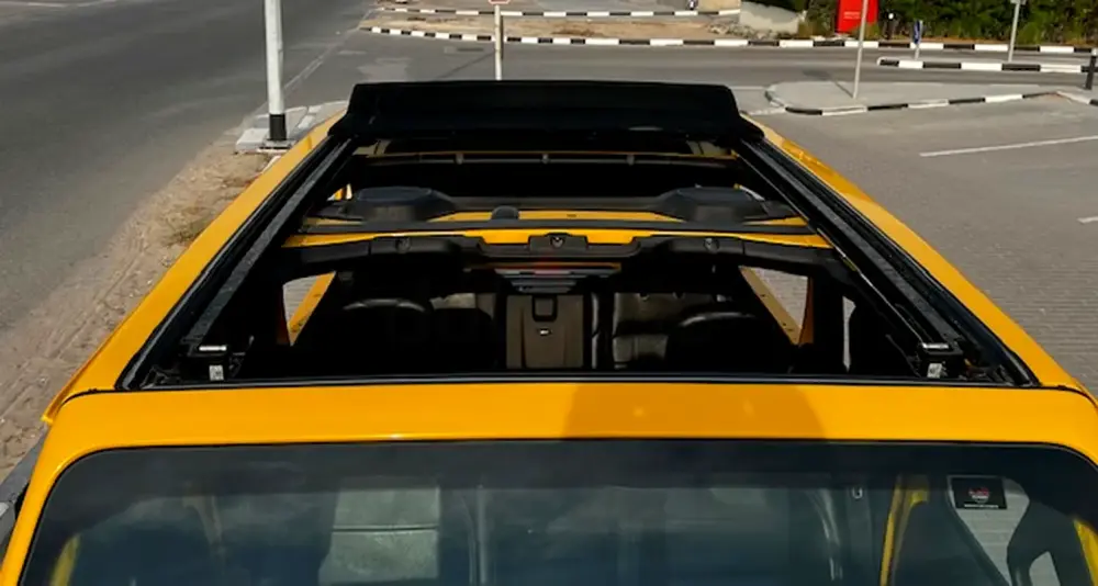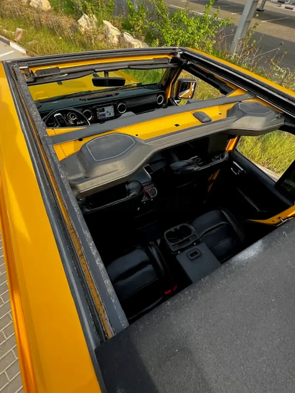 Low Mileage, Jeep Wrangler Sahara Unlimited with One-Touch Power Top, 'burnt' yellow exterior colour, black leather interior, tinted side and rear windows, raised suspension with LT285-70R17 BF Goodrich All Terrain Tyres, insulated sliding roof, additional front spotlights, 8-speed automatic transmission, adaptive Cruise Control, removable rear quarter lights, rear window heater and wiper/washer system, Touchscreen with Uconnect and 4C navigation, Apple CarPlay, Premier Sound System, remote proximity keyless entry, all-weather floor mats in seating areas, Parksense rear park assist system, ParkView rear back-up camera system, Blind Spot monitoring