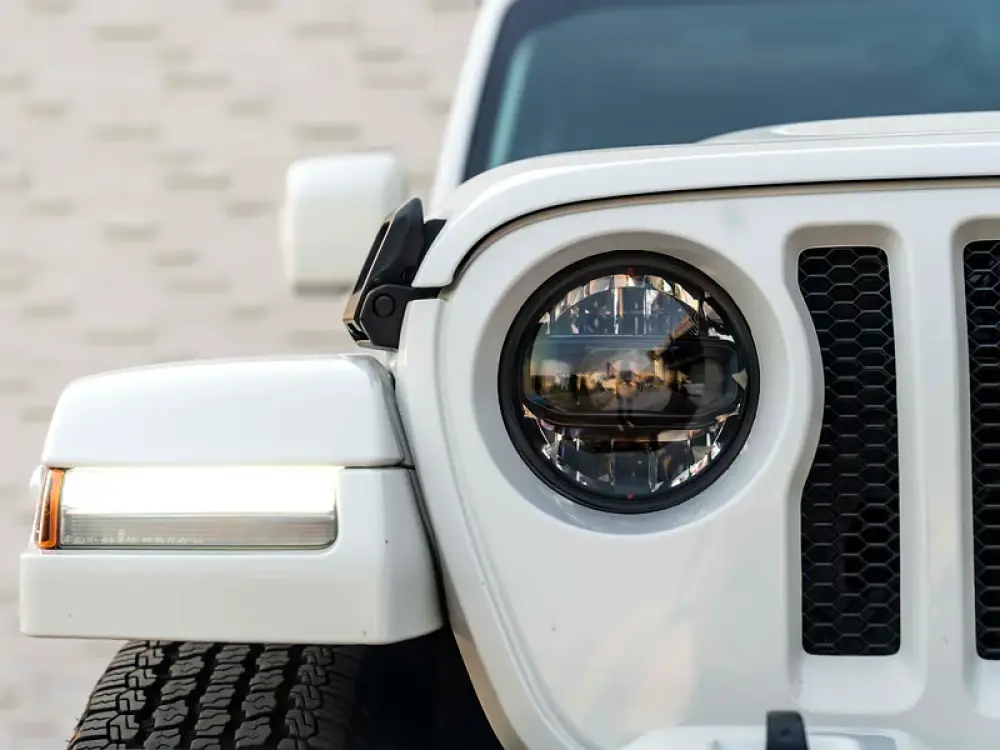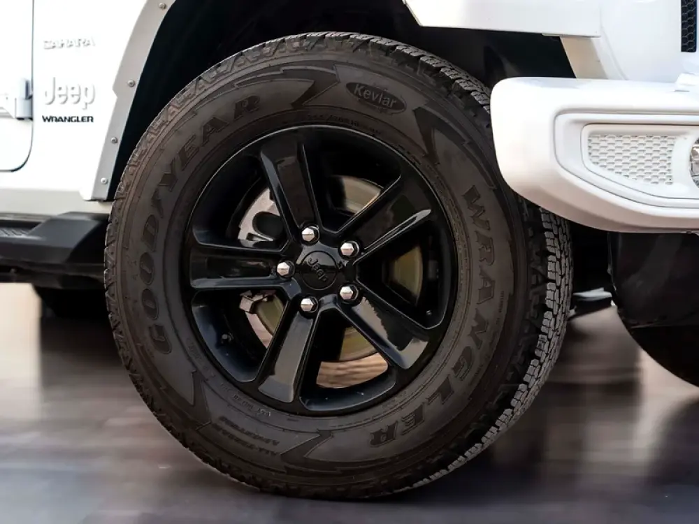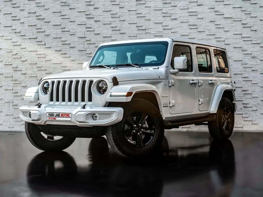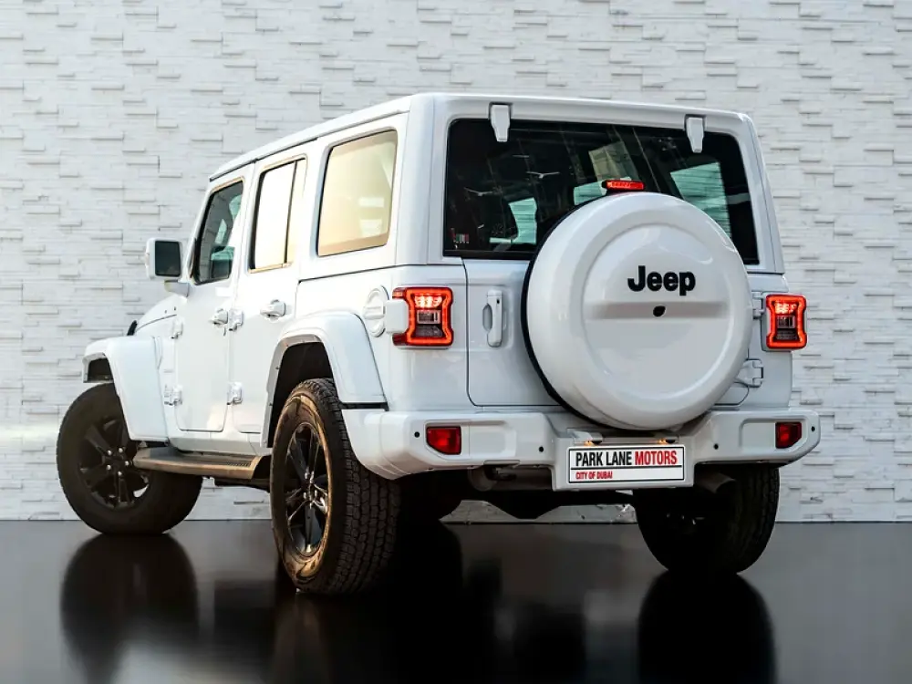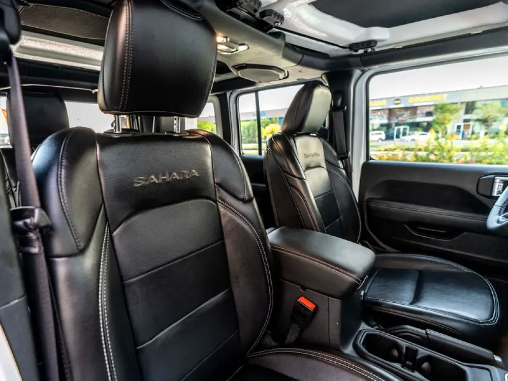 Finished in Bright White with Black Leather Interior, this Sahara edition blends rugged heritage with upscale details.