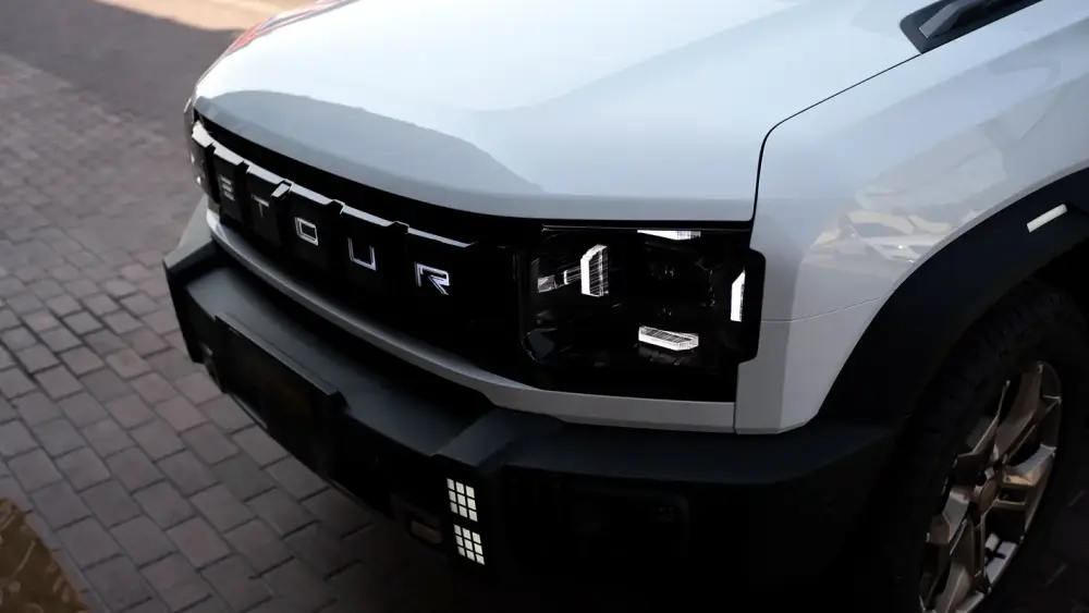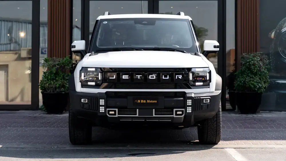 -Grille: Bold “JETOUR” chrome lettering