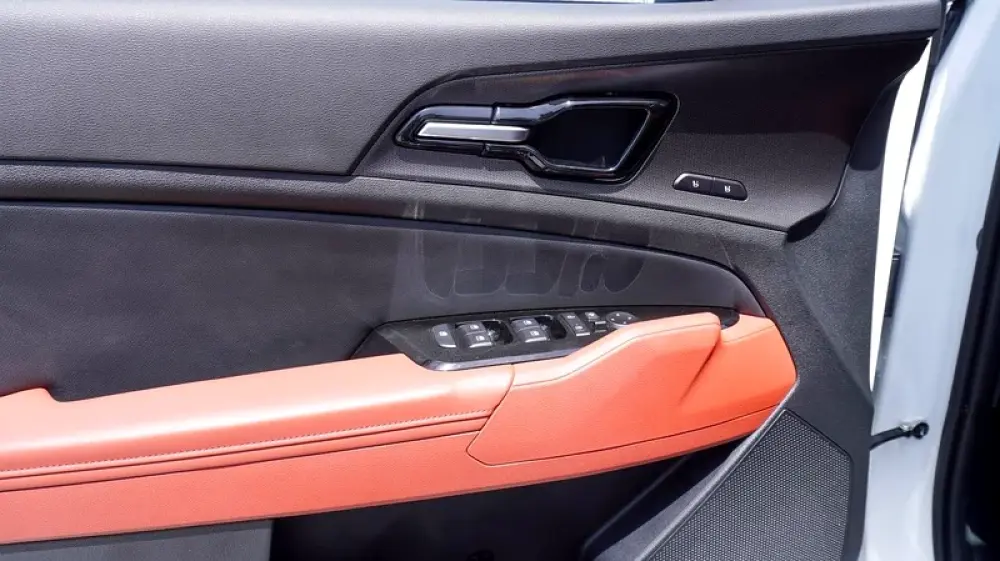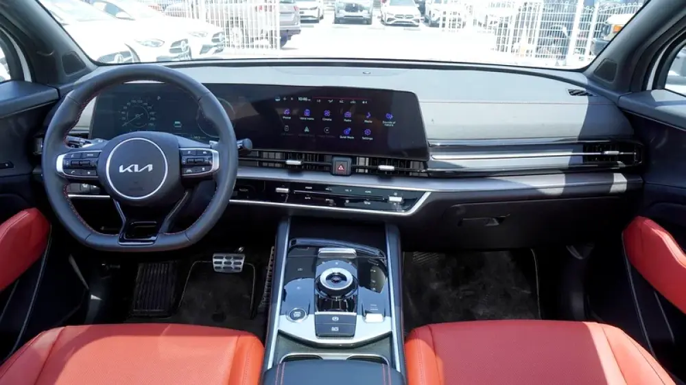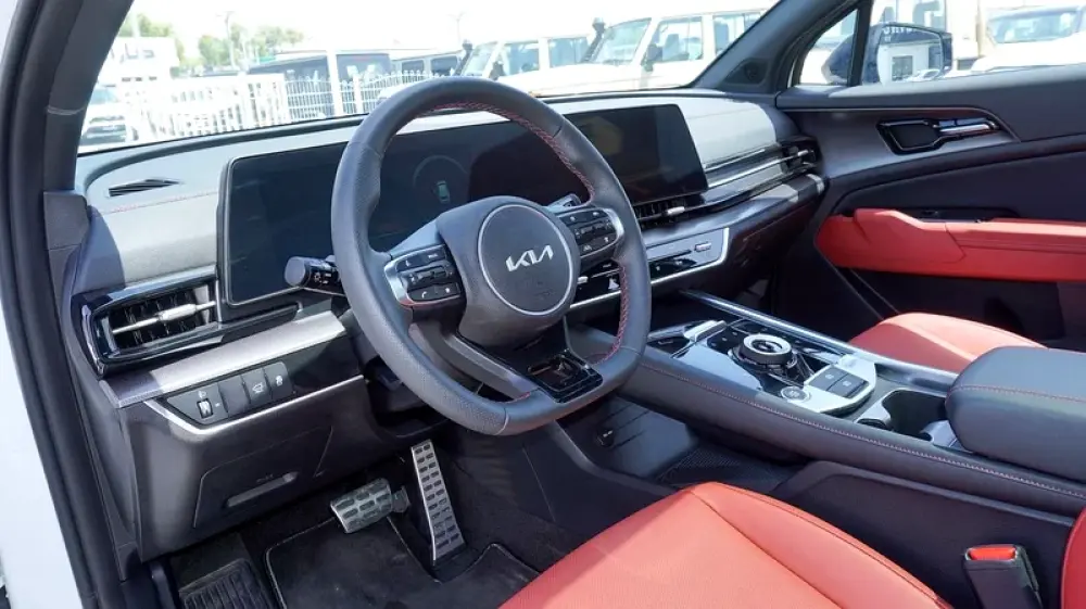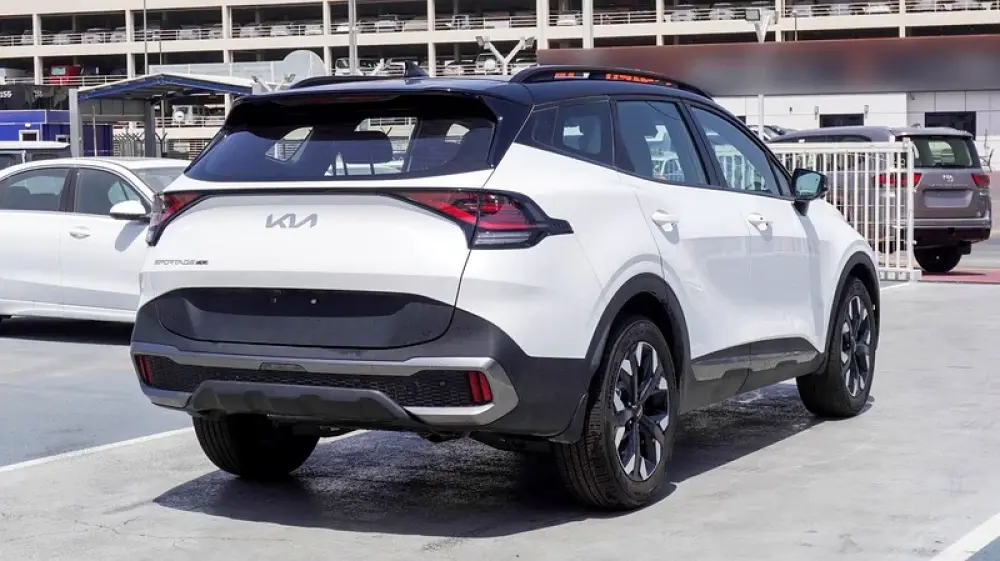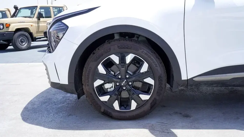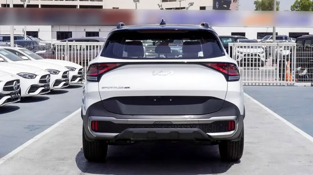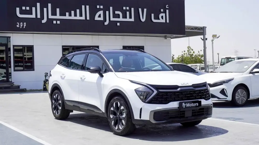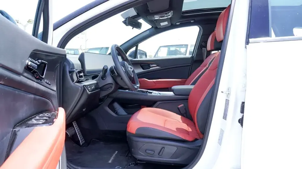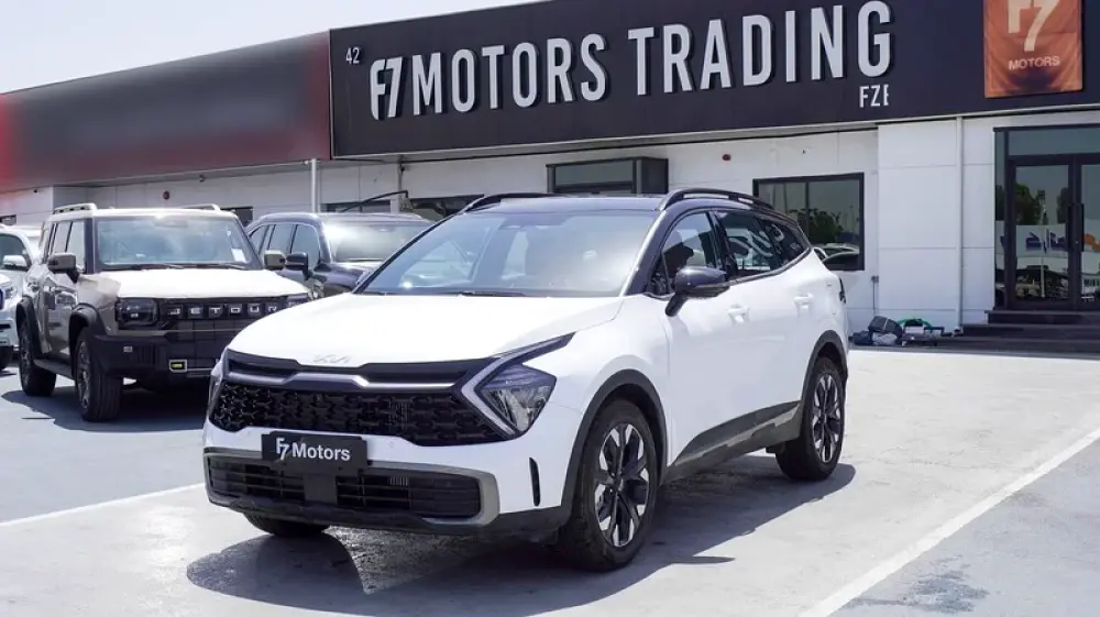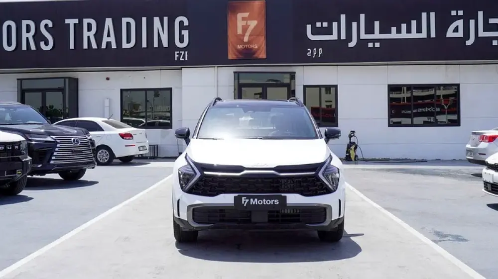 Brand new Kia Sportage 4X for sale in Dubai. White 2025 model, available at F7 Motors Trading FZE. This car has automatic transmission, 4 cylinder engine, 19″ wheels and red interior. GCC specs.