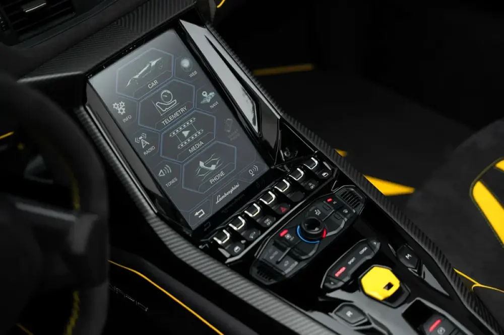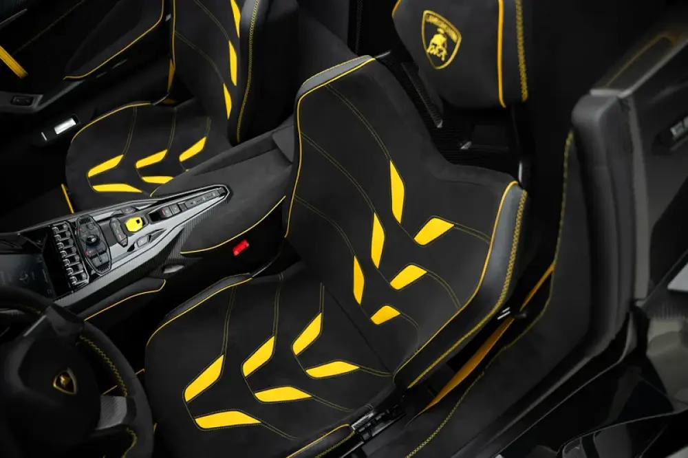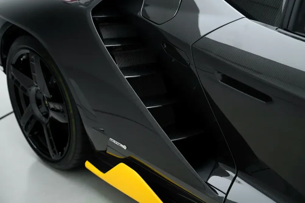 This Centenario Roadster showcases a full exposed carbon fiber body, highlighting its advanced, lightweight construction. It is powered by a formidable naturally aspirated 6.5-liter V12 engine, producing 759 horsepower for raw, visceral performance. This power allows for acceleration from 0-100 km/h in just 2.9 seconds, with a top speed exceeding 350 km/h. Its active aerodynamics and carbon monocoque chassis deliver uncompromising handling and stability.