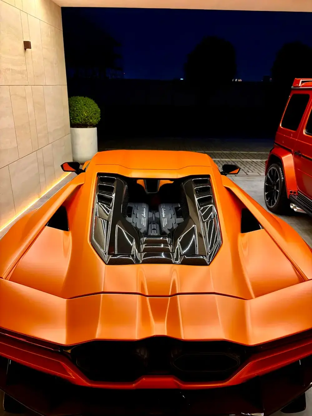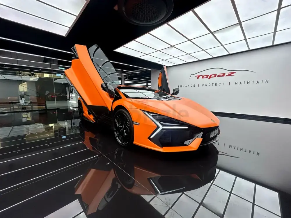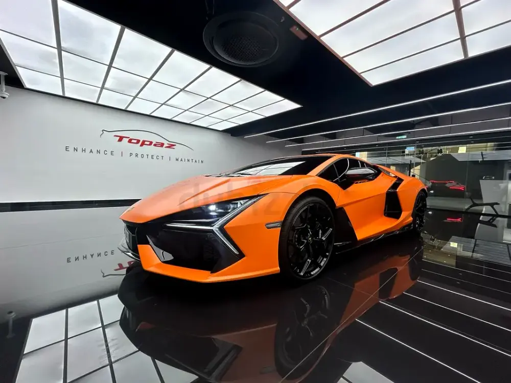 Exterior• Original factory Glossy Orange finish protected with Topaz matte PPF conversion• Aerodynamic exterior detailing with high-gloss accents• Large-diameter multi-finish performance wheels• Ceramic performance braking system with contrast calipers• Carbon fiber engine-bay detailing and exterior trim elements• Matte black performance exhaust finishers• Rear Lamborghini emblem in polished metallic finish