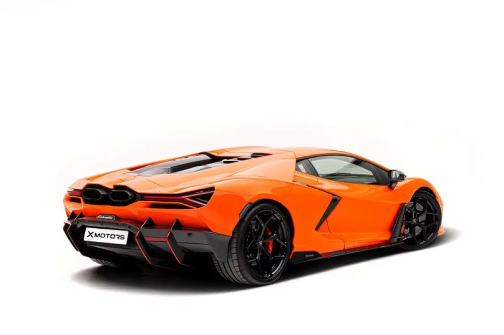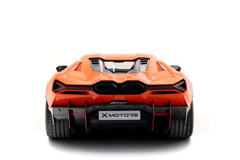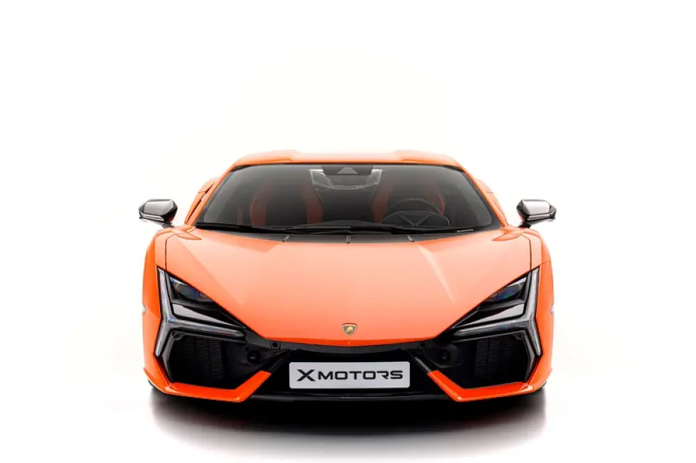 •This Lamborghini Revuelto represents the perfect fusion of breathtaking performance and modern usability. Its 6.5L V12 paired with electric motors ensures thrilling power delivery, while the exclusive Arancio Apodis finish and carbon fiber details make it a standout even among supercars.