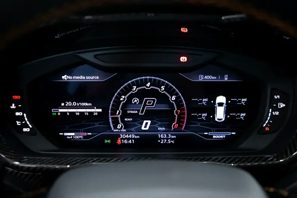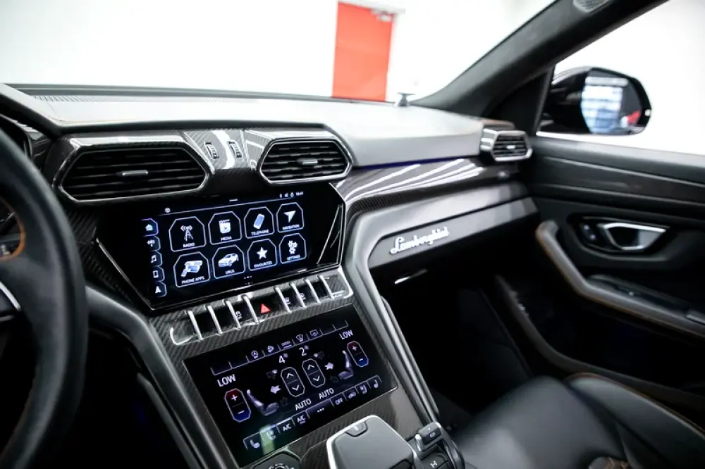 Lamborghini lettering on dashboard