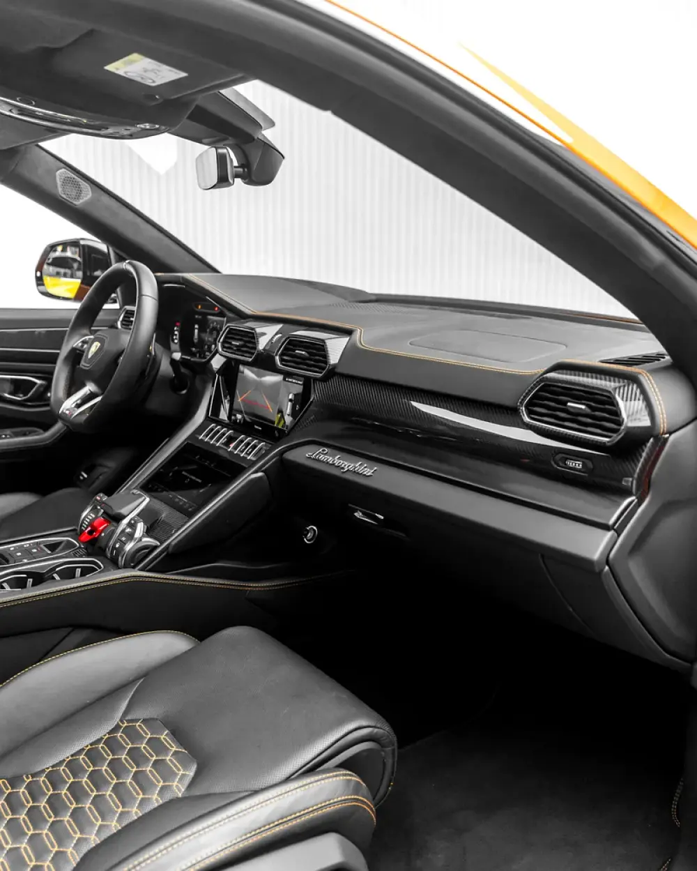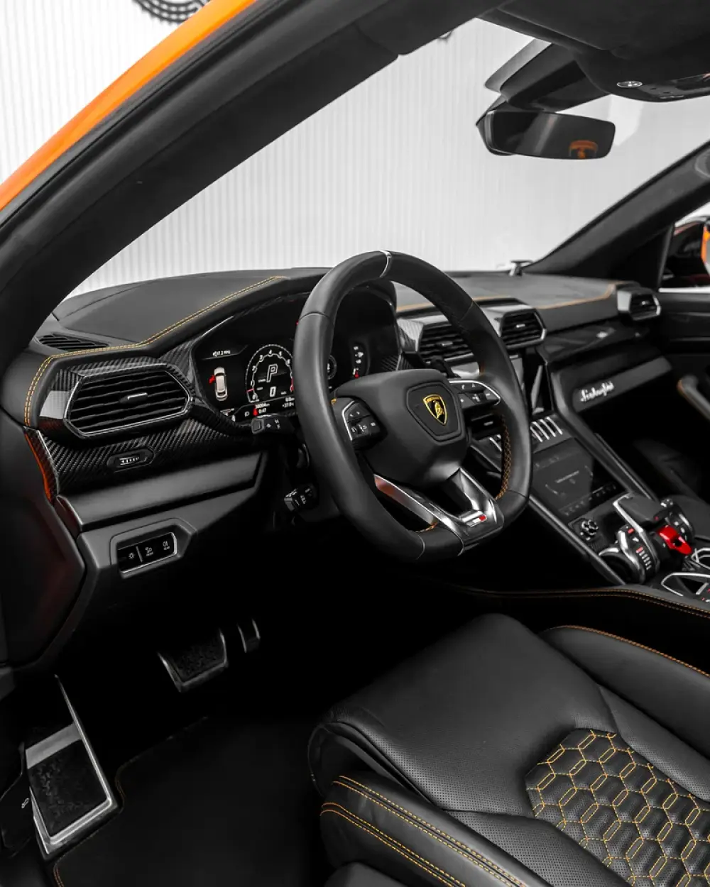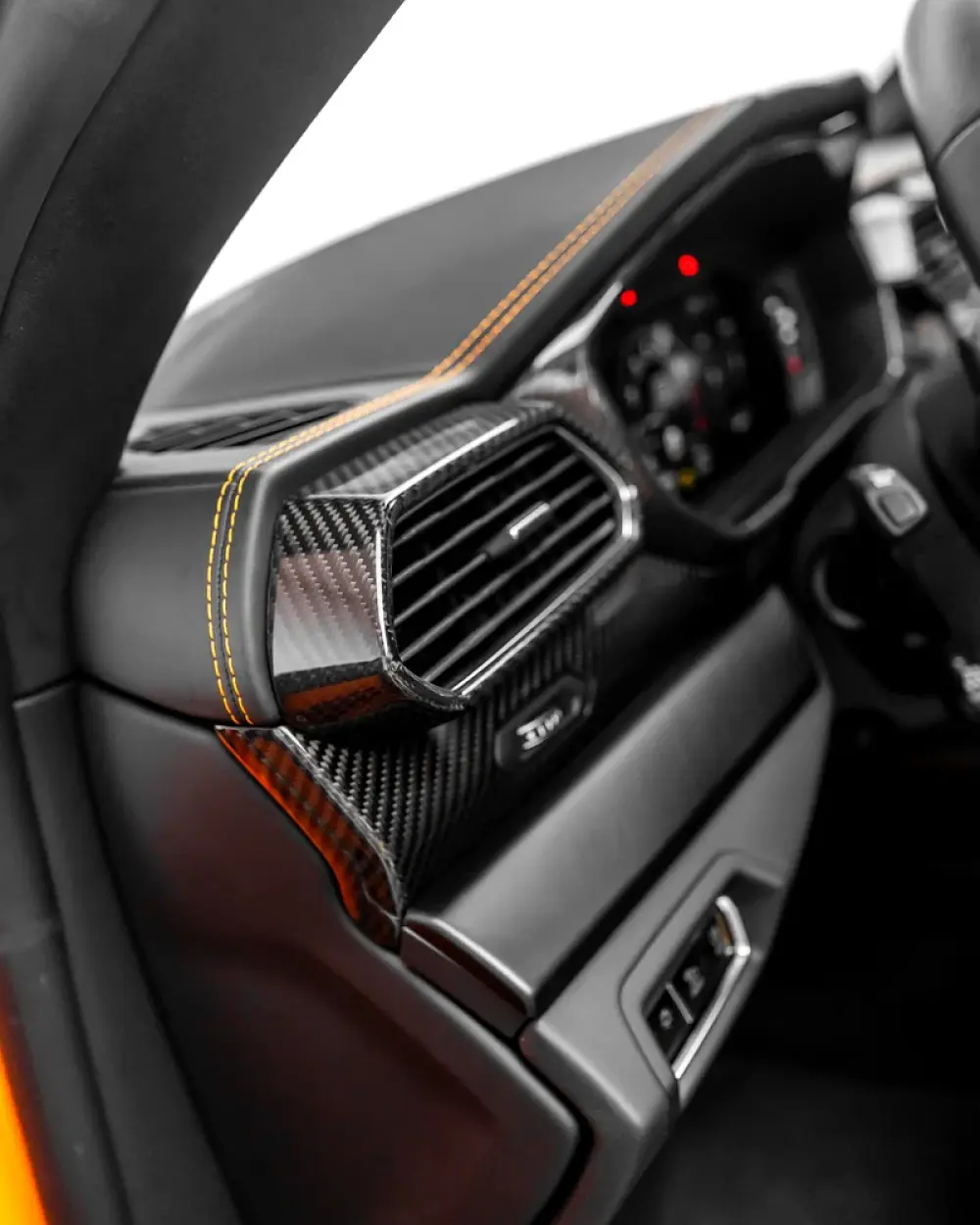 -Leather & Alcantara interior in Nero with orange contrast stitching