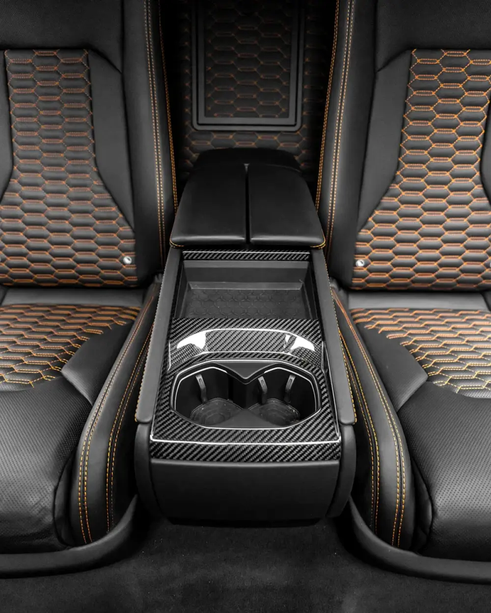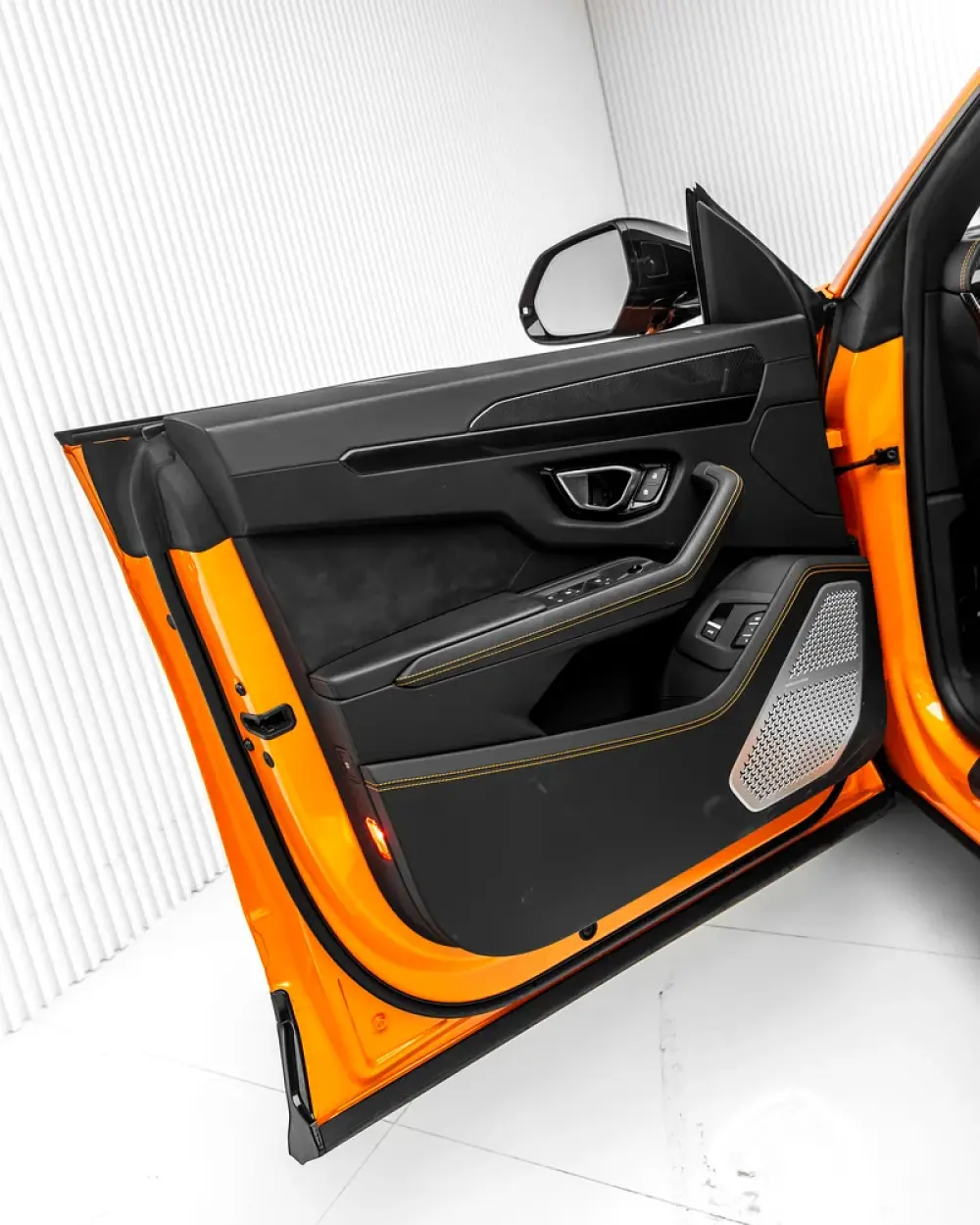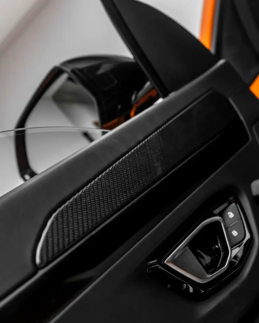 -Leather & Alcantara interior in Nero with orange contrast stitching