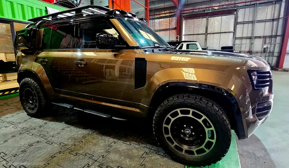 2023 model Land Rover Defender 110 . P400 HSE. In Immaculate condition, one expat owner from new. Loaded with extras, Led roof mounted light pod, roof rack, side ladder and storage pod. Factory finished Octa body kit and rims fitted with BFGoodrich KO2 all-terrains.
