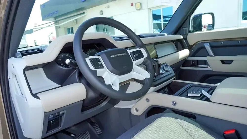 New 2024 Land Rover Defender X DYNAMIC SE P300 for sale in Dubai. Available from Story Auto Middle East FZE. Automatic transmission, 4 cylinder engine, 20″ wheels and beige interior. Never driven, European specs.