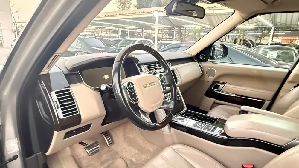 رنج روفر فوج 2015 ذهبي من داخل بيچ فل اوبشن فتحه بانورما مقاعد جلد مقاعد كهرباء دخول بدون مفتاح تشغيل بصمه شاشه اماميه نافجيشن دبه كهرباء حساسات اماميه و خلفيه السياره بحاله ممتازة الداخلي الخارج