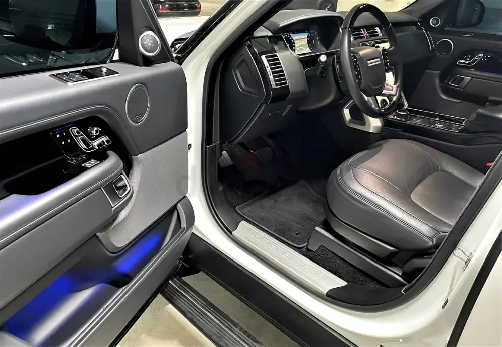 رنج فوج 6 سلندر المحرك الكبير موديل 2019 ابيض من الداخل اسود خليجي من الطاير بدون حوادث، صبغة وكالة ، خالي من الشحفات كامل المواصفات خمس كاميرات , كراسي كبيرة ، عشر اللوان داخلية ، دواسات كهربائية