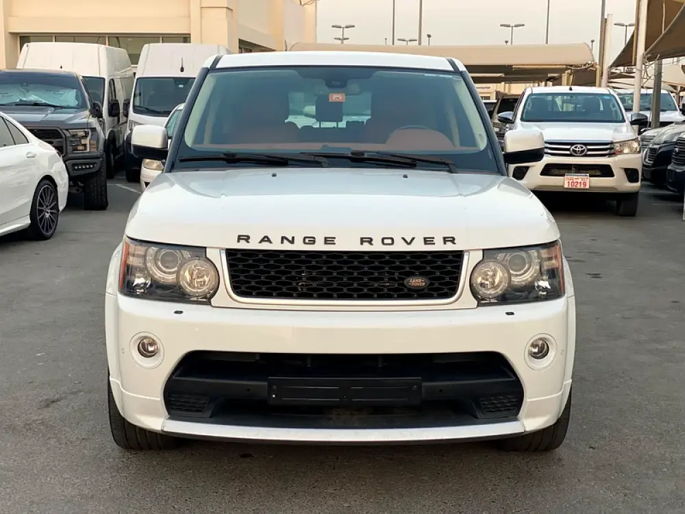 Range Rover 2013 Sport, white with orange interior, full options, HSE kit, electric seats, heating and cooling, sunroof, front screen, rear camera, navigation, pedals, front and rear sensors, hydraulics. The car is in excellent condition inside and