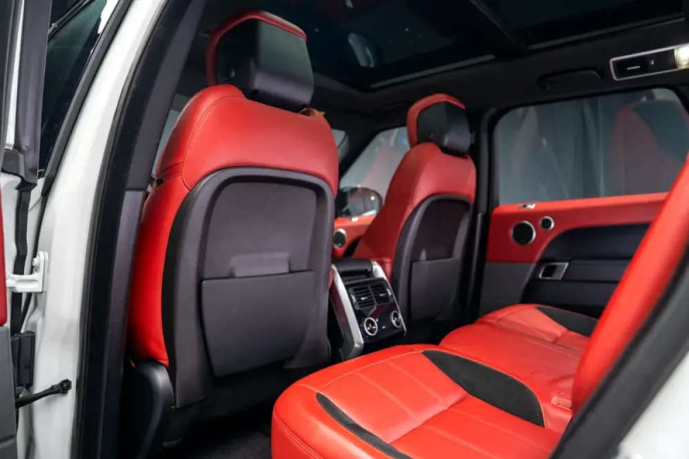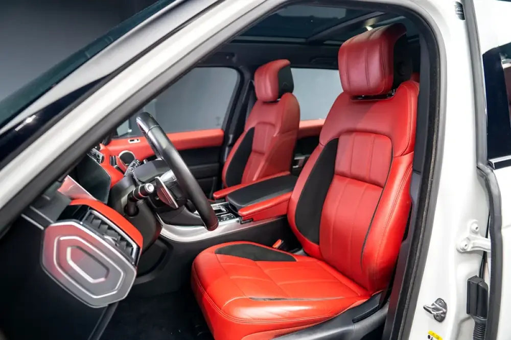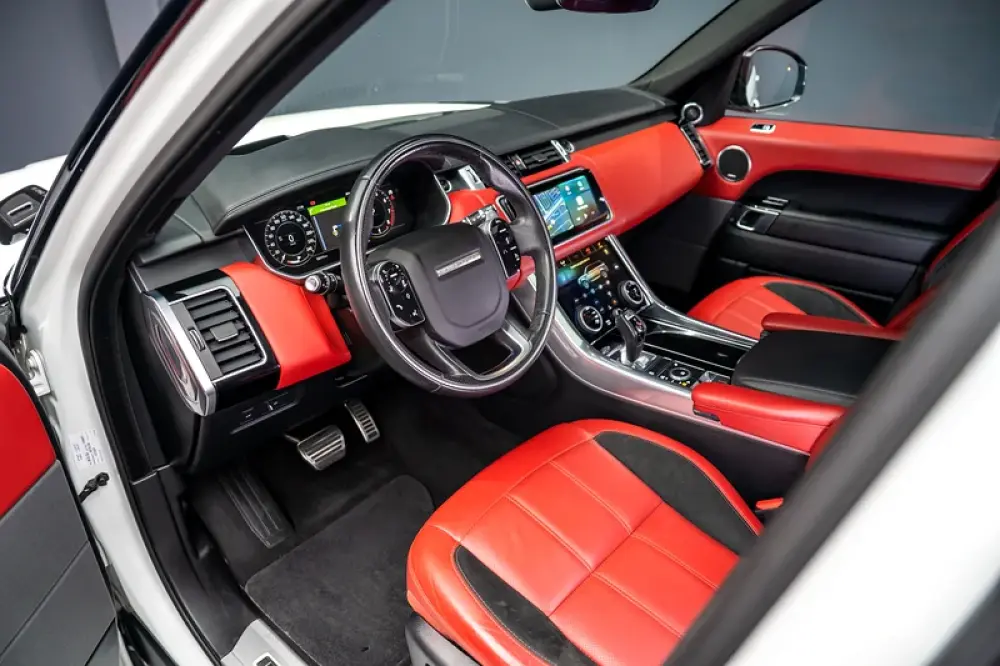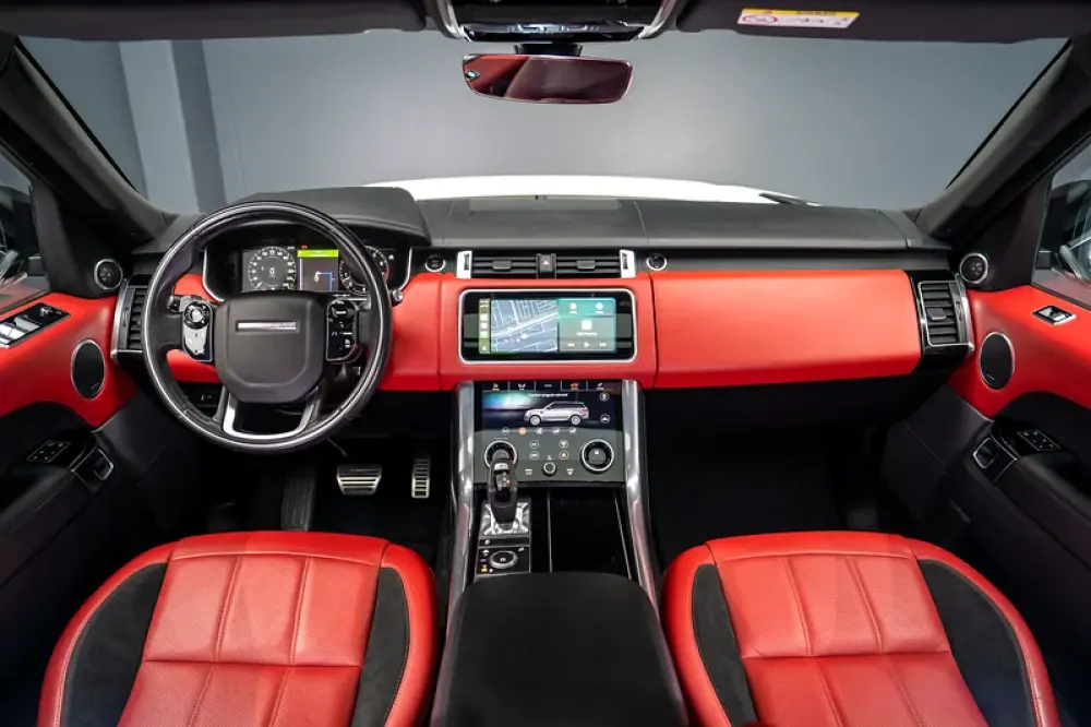 As with the rest of the Land Rover lineup, the 2019 Range Rover Sport's cabin is handsomely tailored and upscale. Genuine leather upholstery, a power-adjustable steering column, ambient interior lighting, and dual-zone climate control are all standard. Fancier HSE models come with soft Windsor leather seats with heat for the driver and front-seat passenger, a fixed-glass panoramic sunroof, and an 11-speaker Meridian sound system.