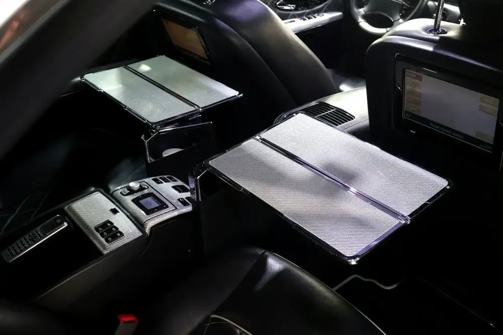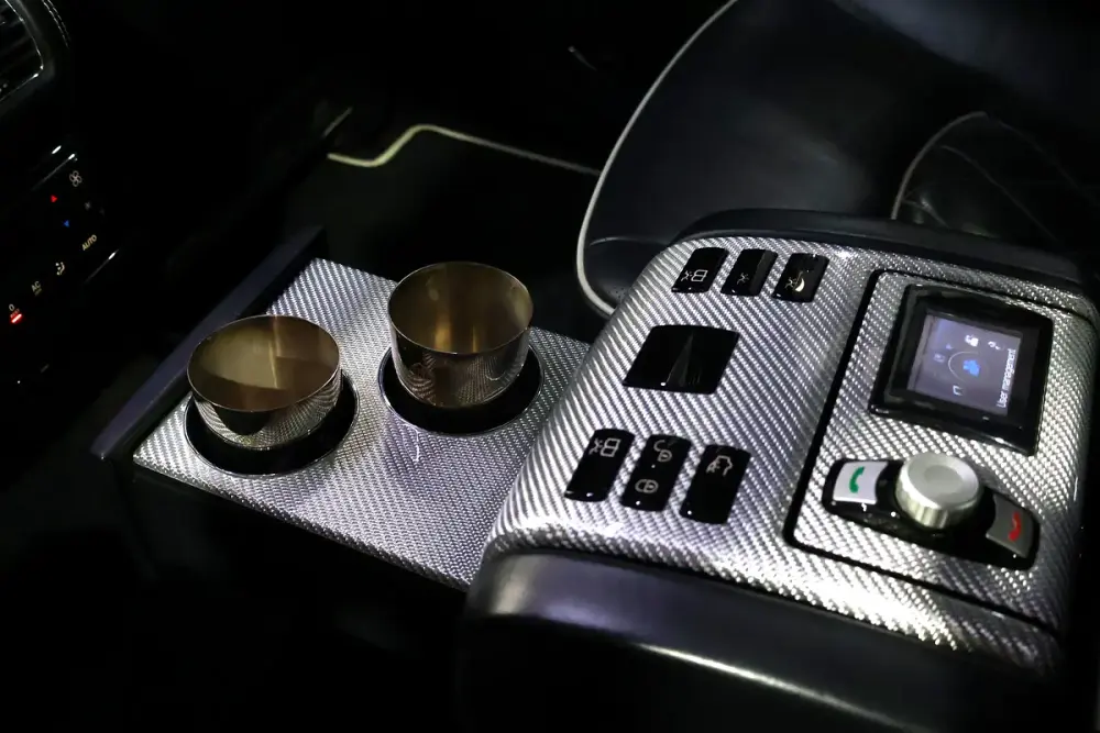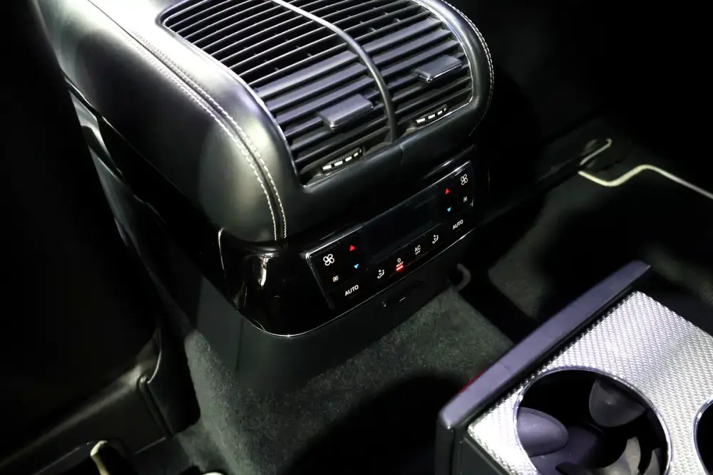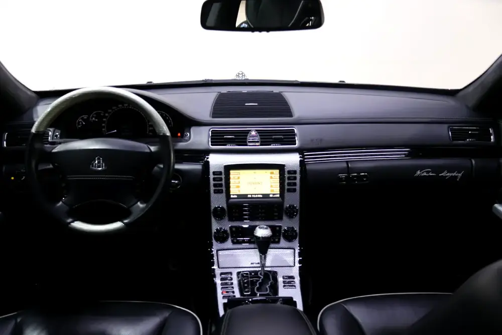 • Laser-engraved light motif in the front armrest representing the double-M Maybach logo.