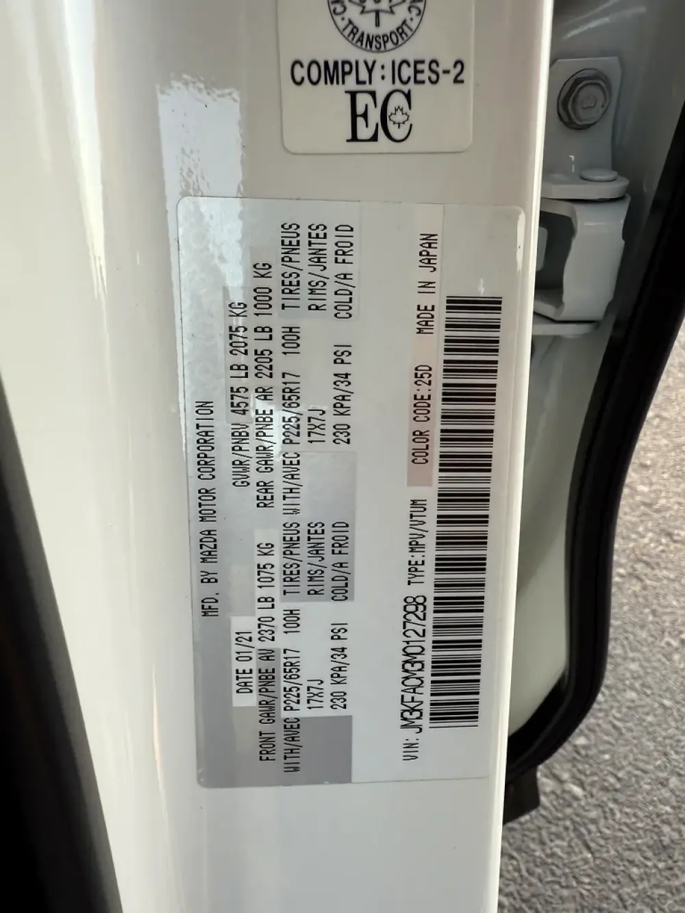 2021 MAZDA CX5 LIMITED 2.5L AWD KEYLESS CANADA SPEC