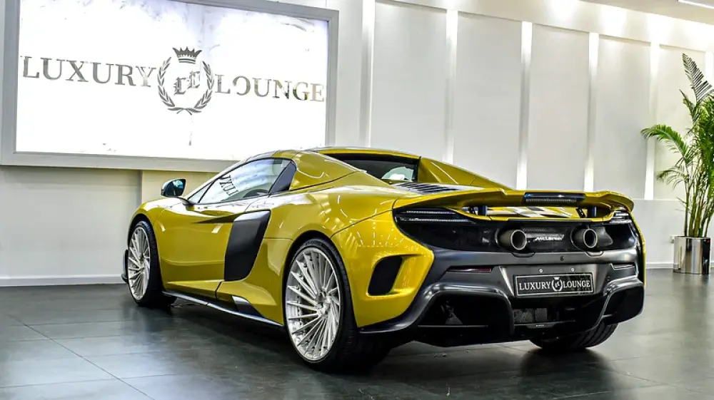 This Pre-owned McLAREN 675 LT-SPIDER 2016 is now available at Luxury Lounge car showroom, along Sheikh Zayed Road Dubai UAE. With Special shade of Yellow exterior and black interior. Full carbon and the car like brand new.