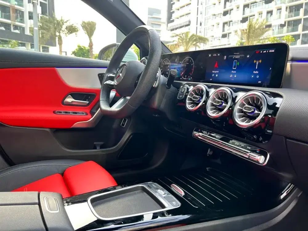Mercedes A 200 ///AMG Saloon, Bought Directly from Mercedes Showroom Agency Gargash, Latest Luxury Shape, Gulf Specification, Under 5 years Mercedes Warranty and Free Service Contact (Mercedes Agreements Available), Amazing Mercedes Polar White Metallic Colour without Scratches in Excellent Condition and Electrical Red Leather Seats with Memory, Wireless Apple Car Play, Panoramic Sun Roof, ///AMG Chrome with Glossy Black Wheels, Blind Spot, Digital Light, Front Big Touch Screen with 3D Navigation System, Wireless Phone Charger, Dynamic Drive Control with Different Modes (Individual - Sport+ - Sport- Comfort - Eco), 64 Color interactive Lighting, Front and Rear Parking Sensor with Camera, 2 Keys Available, Nono Ceramic Cost 7,800 Dhs, Only Serious Buyers, Car Dealers please Don’t Call NO Time Wasting.