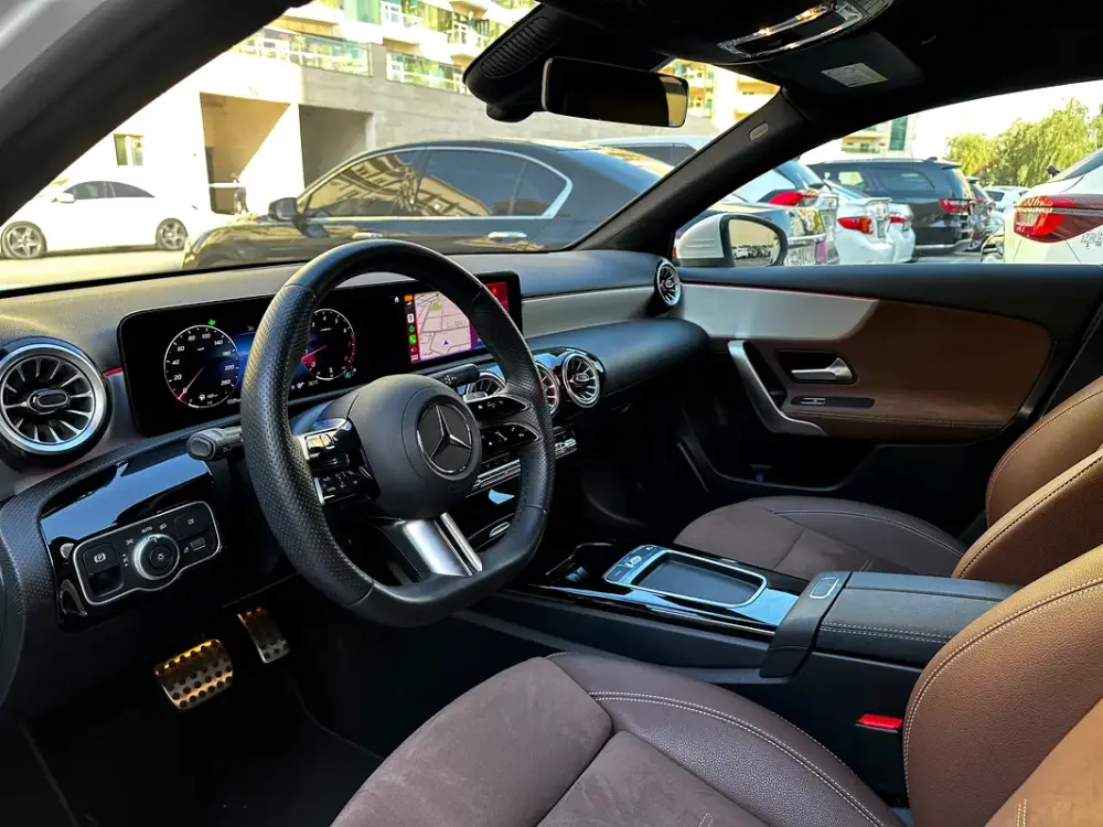2025 Mercedes-Benz A200 Sedan (GCC specification) with only 9,000 km, finished with AMG styling elements, premium interior, and still under Mercedes warranty for 6 more months. Exceptionally clean and lightly driven.