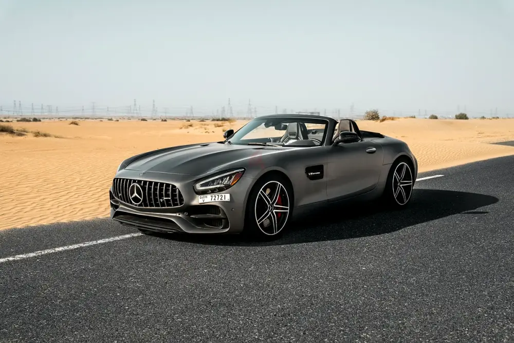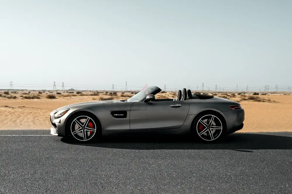 Orginal Matte Grey Red Interior 2021 Mercedes AMG GTC Roadster, 4.0L V8 Biturbo, 557 HP / 700 Nm, 7-Speed AMG Speedshift DCT Gearbox