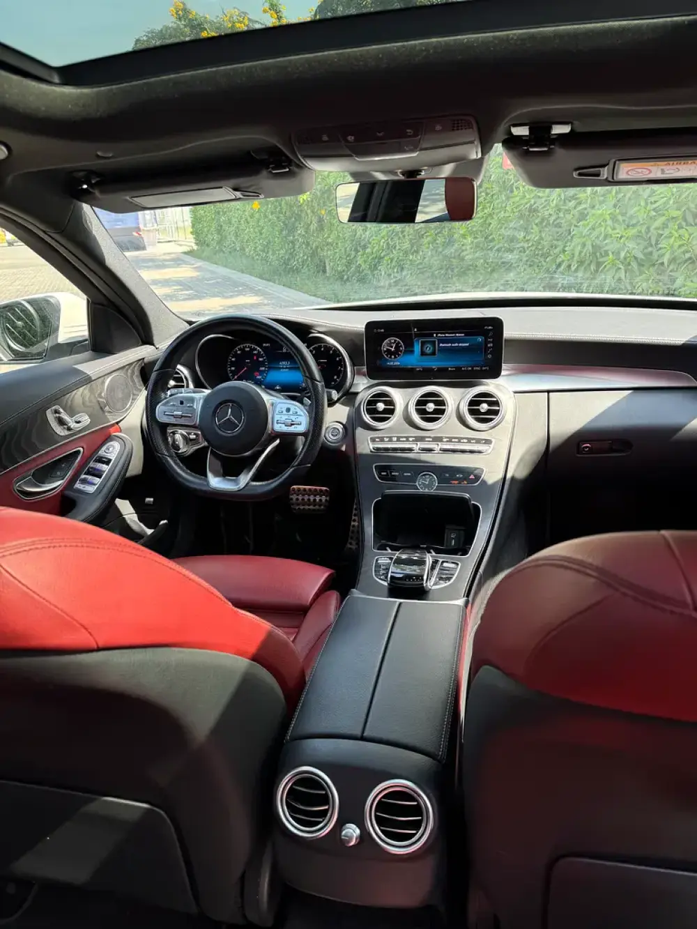 Car play, all assistance, cruise control, good sound system, sunroof, red and black interior.