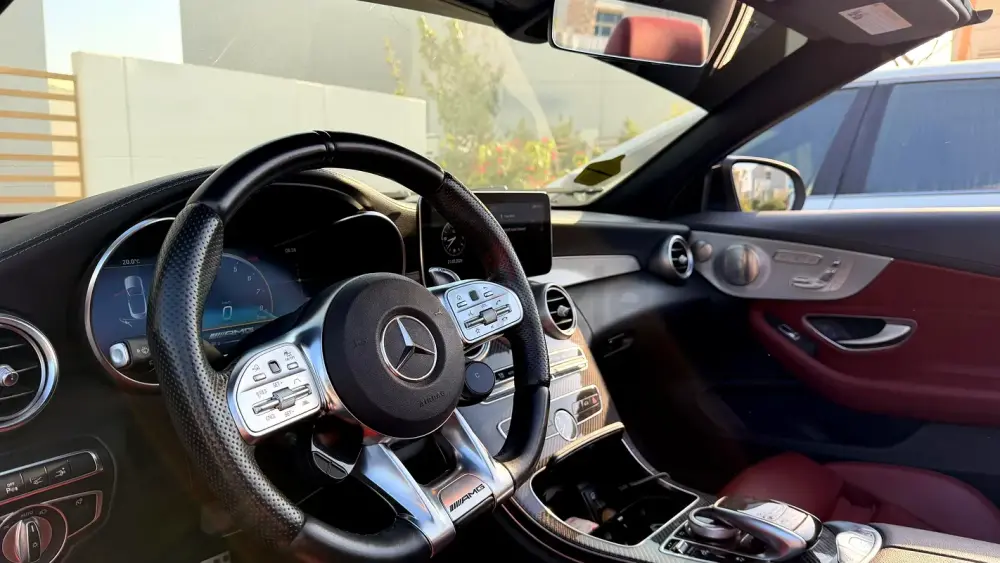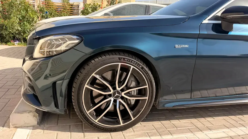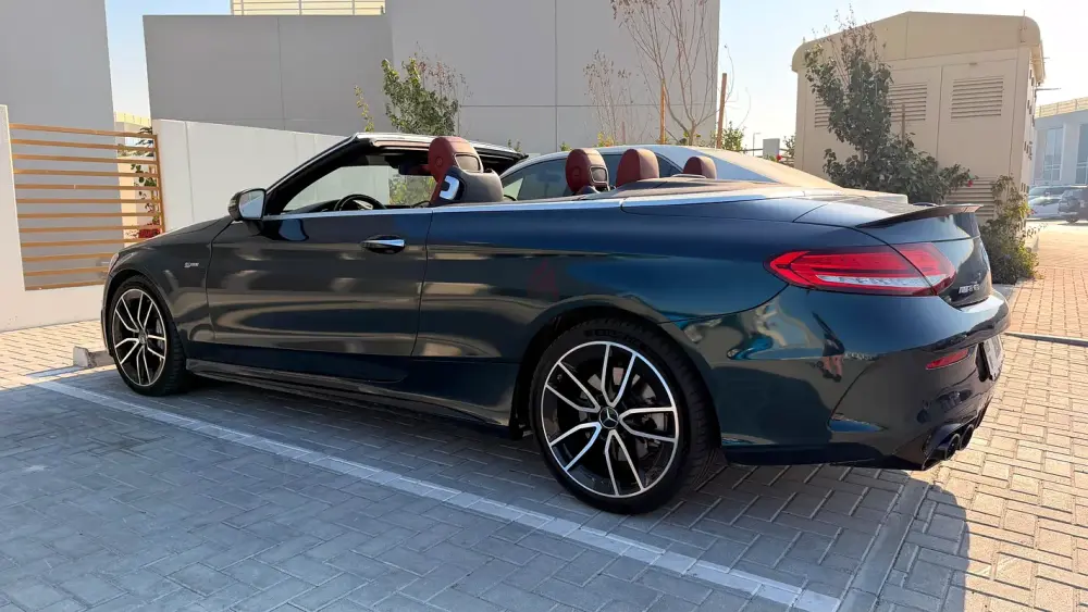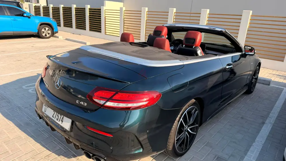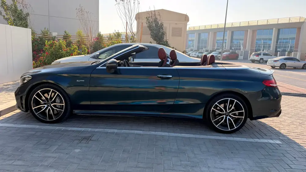 Mercedes-AMG C43 Cabriolet in an elegant dark green color.